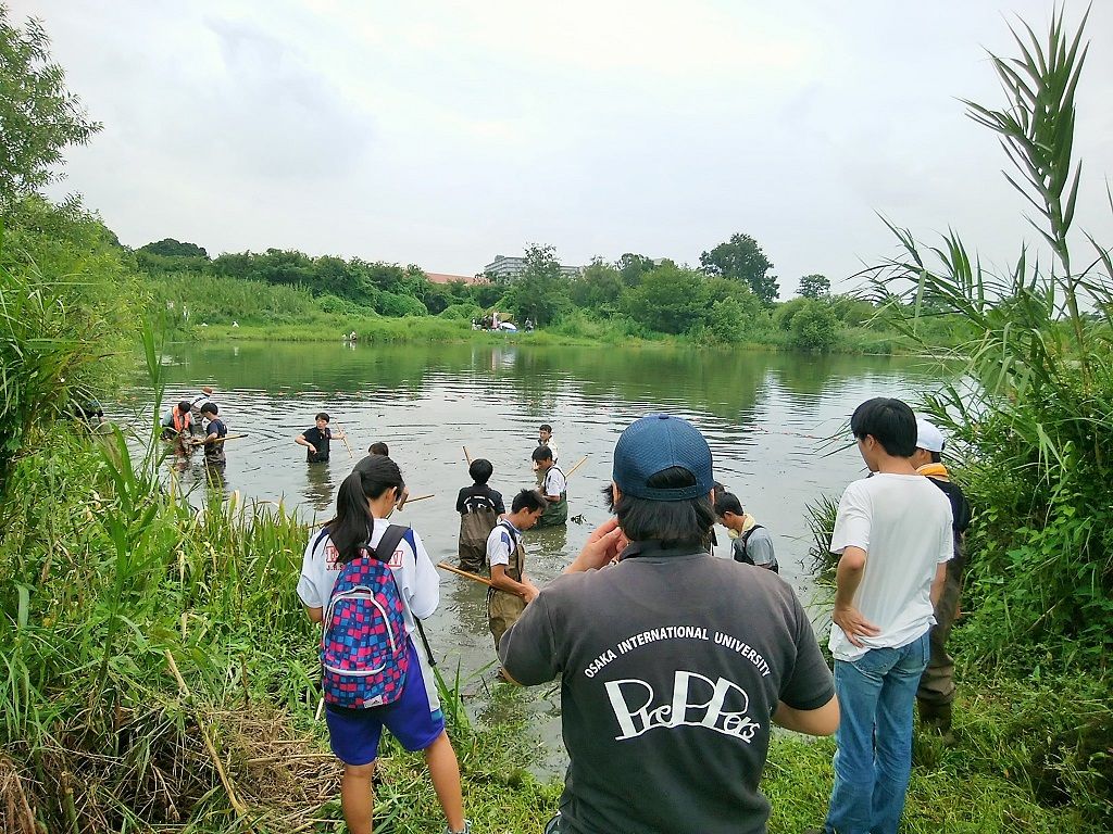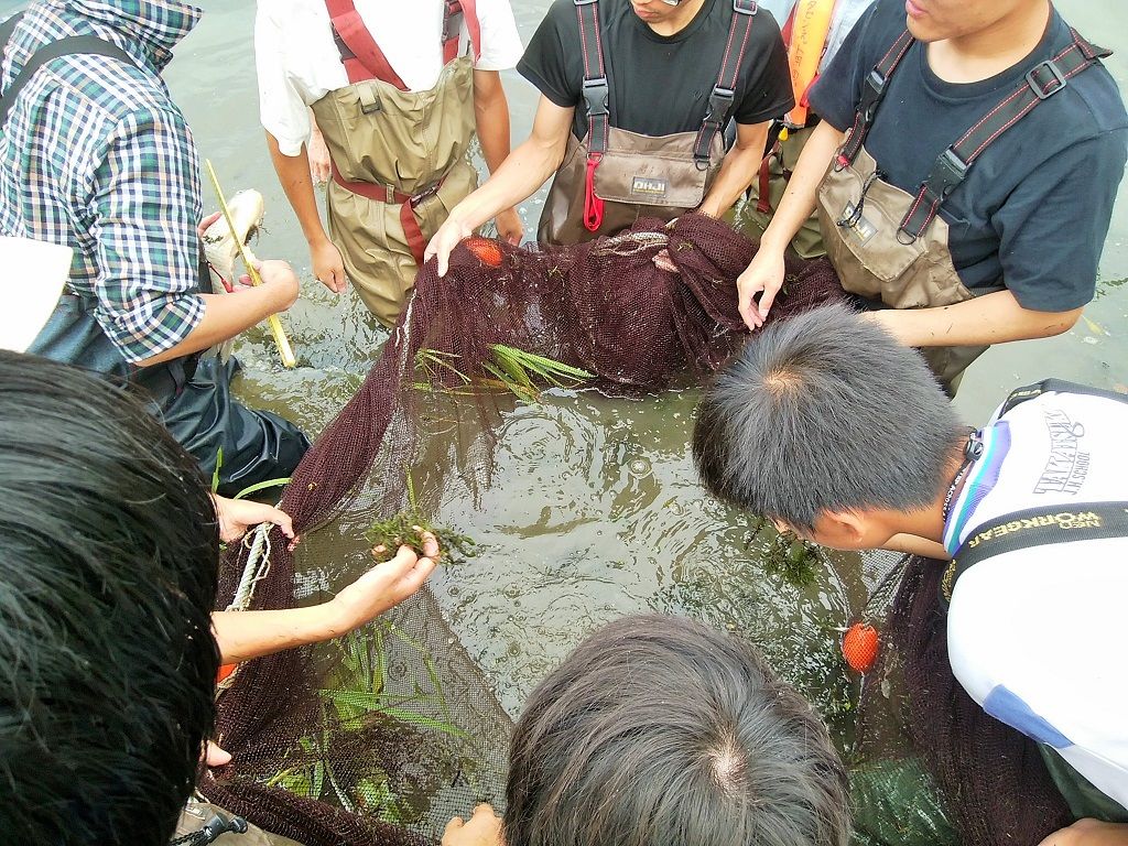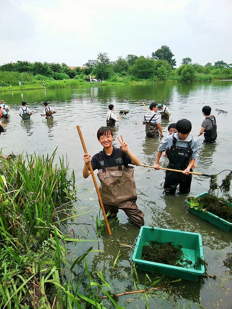 今回は、ほぼ全員がレーキ、タモ網を持ち除去していきました。