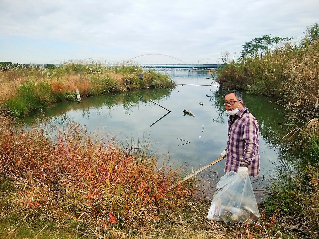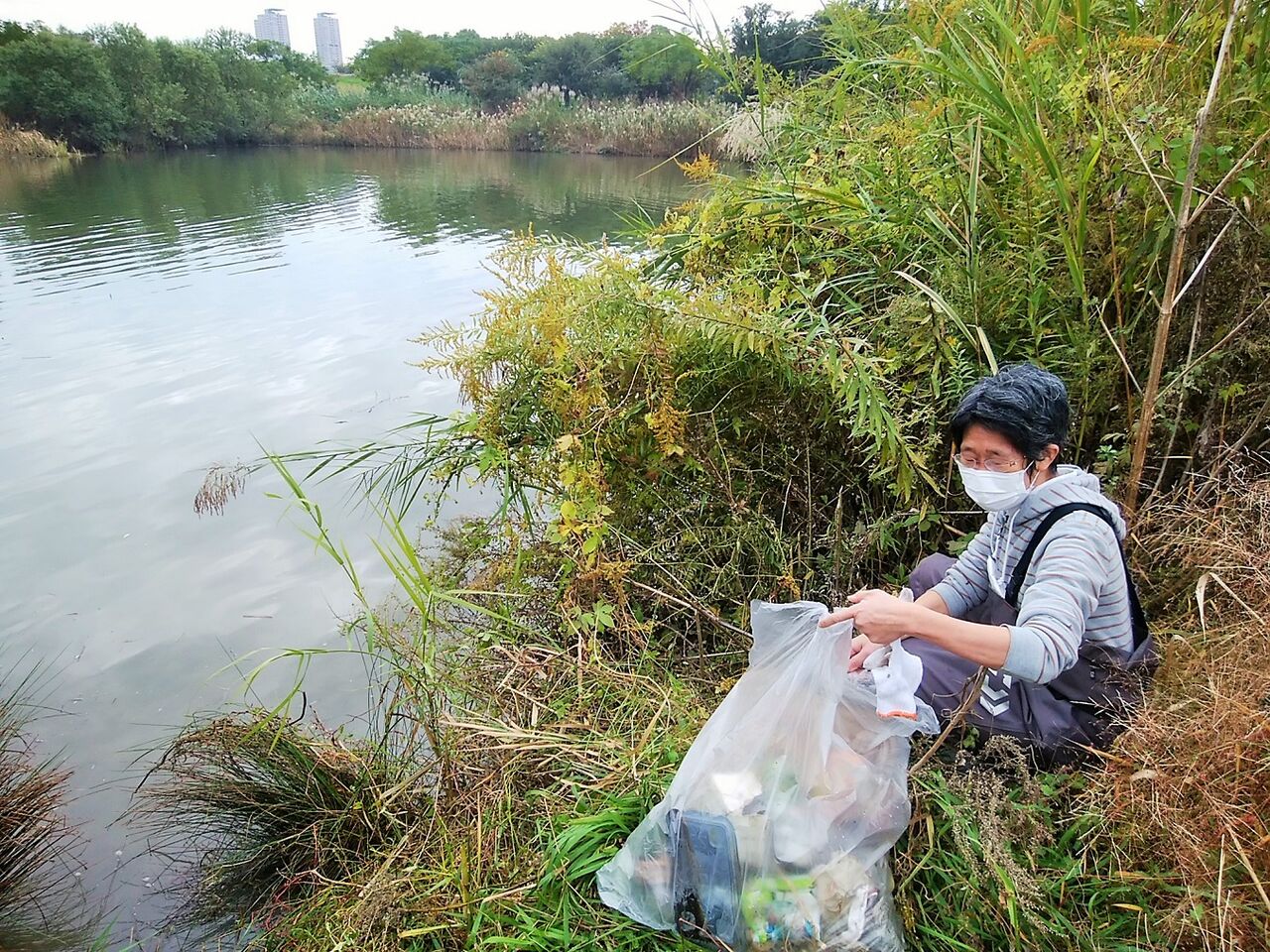 犬の散歩時に糞を回収したレジ袋を川に捨てに来る。