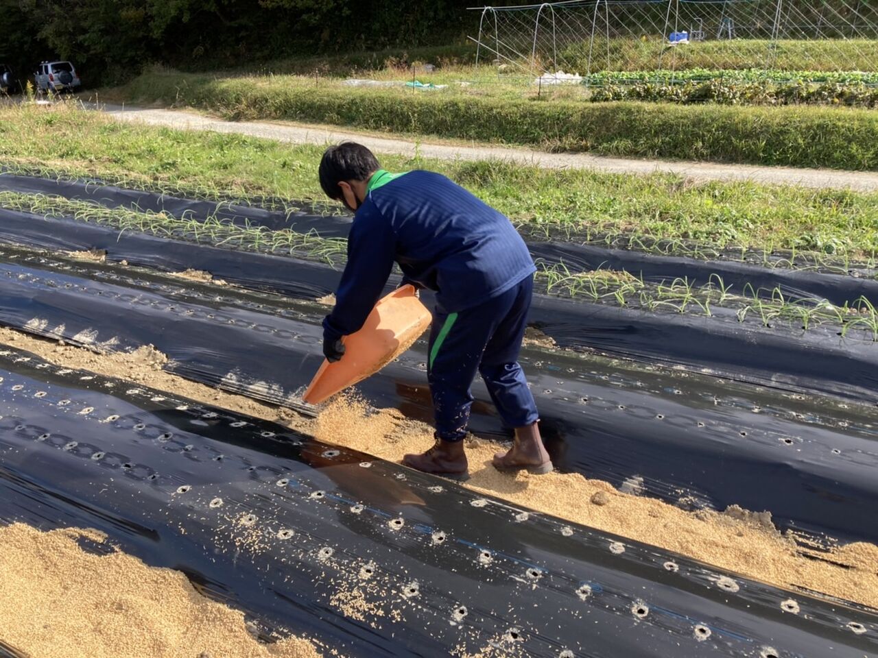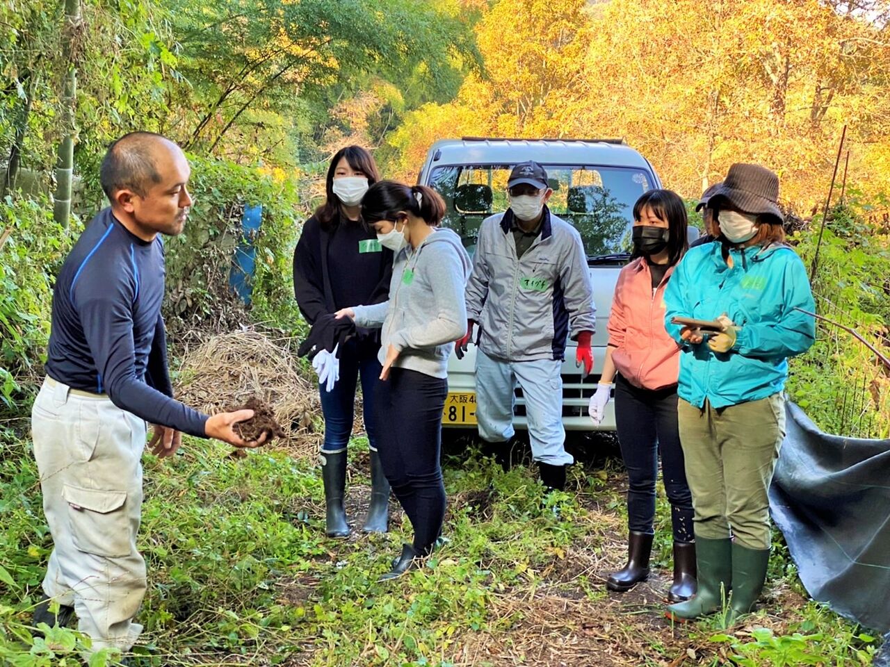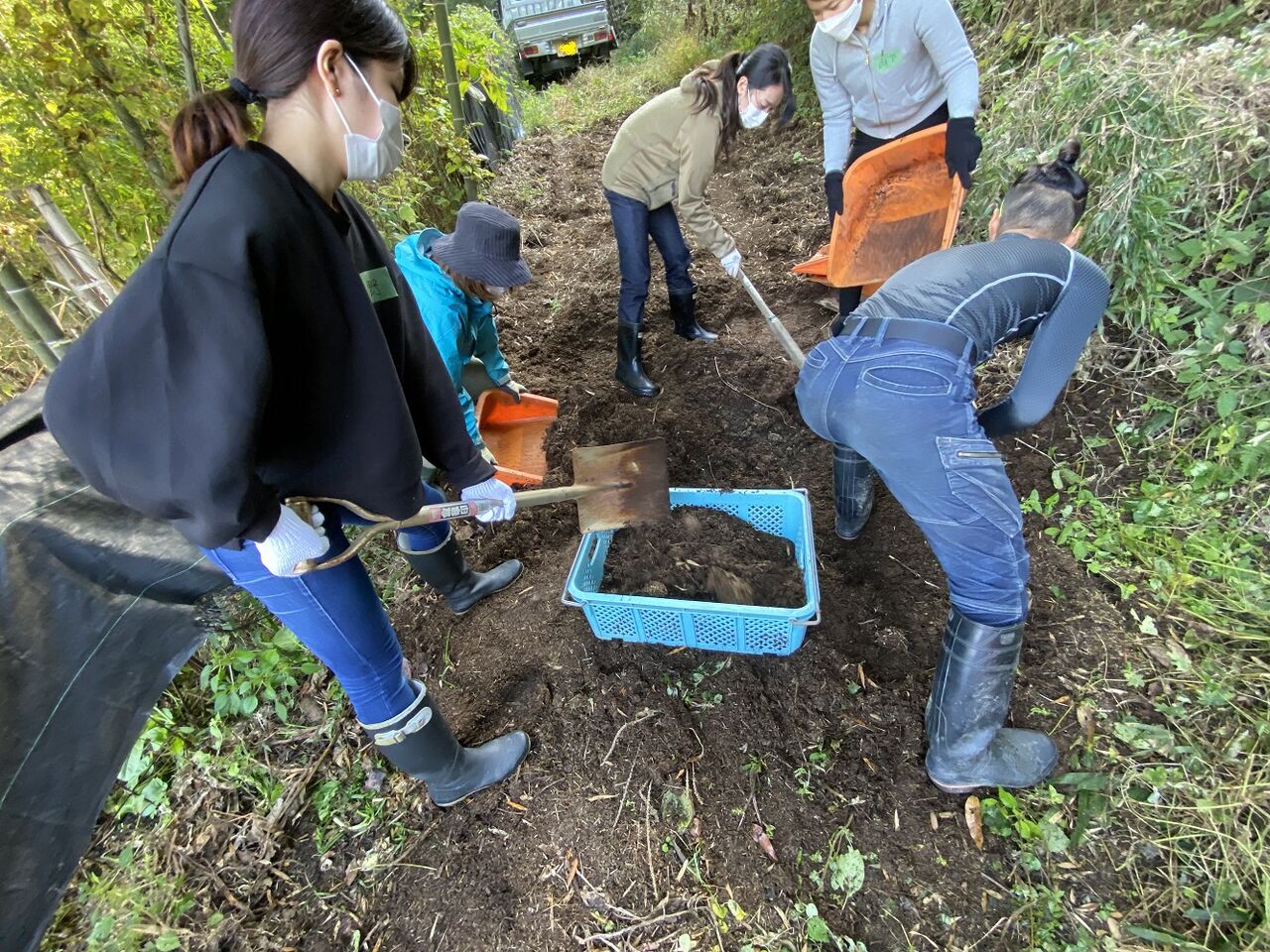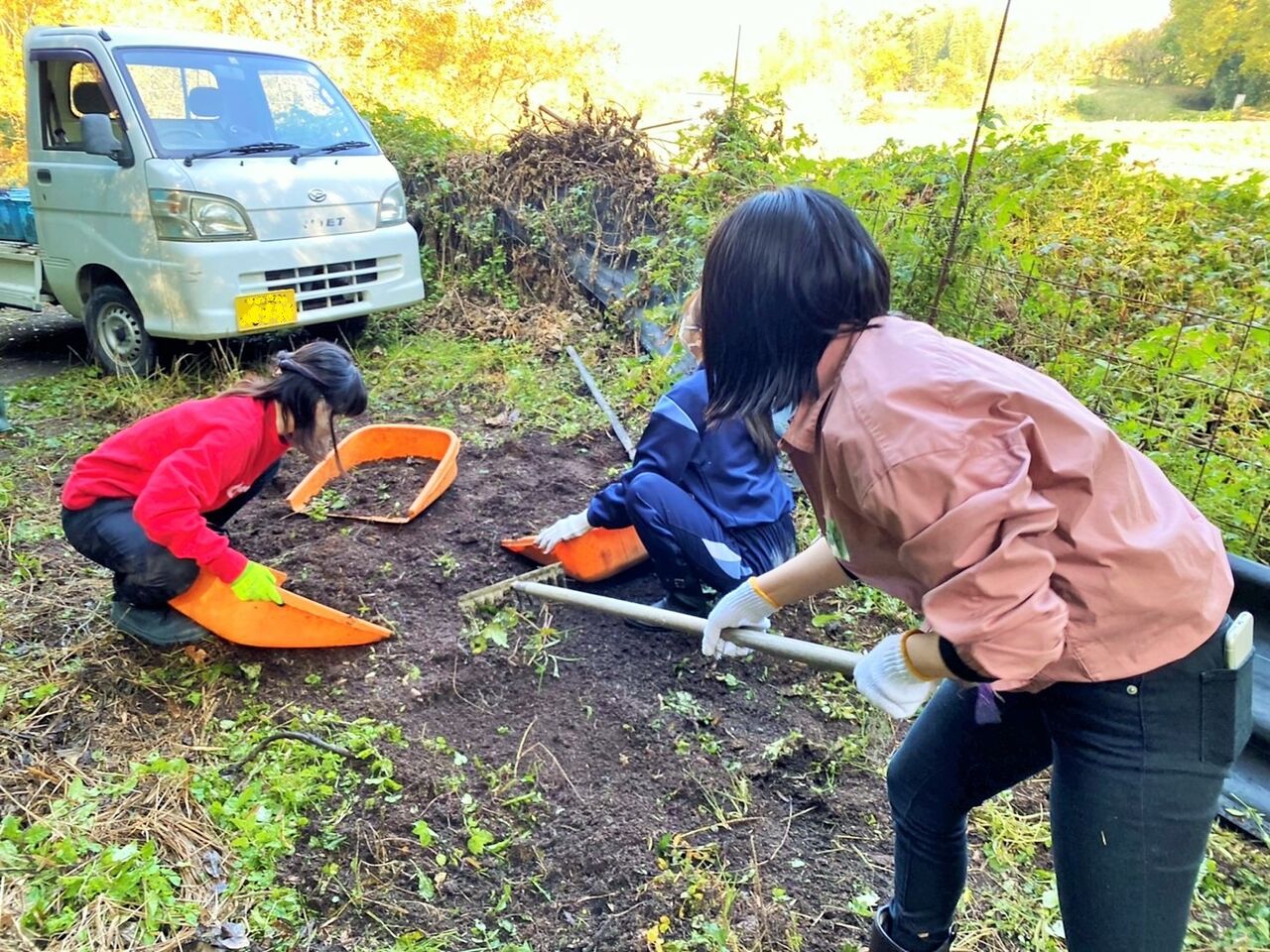 中央のレジ袋の中身は、糞のようなものが入っています。