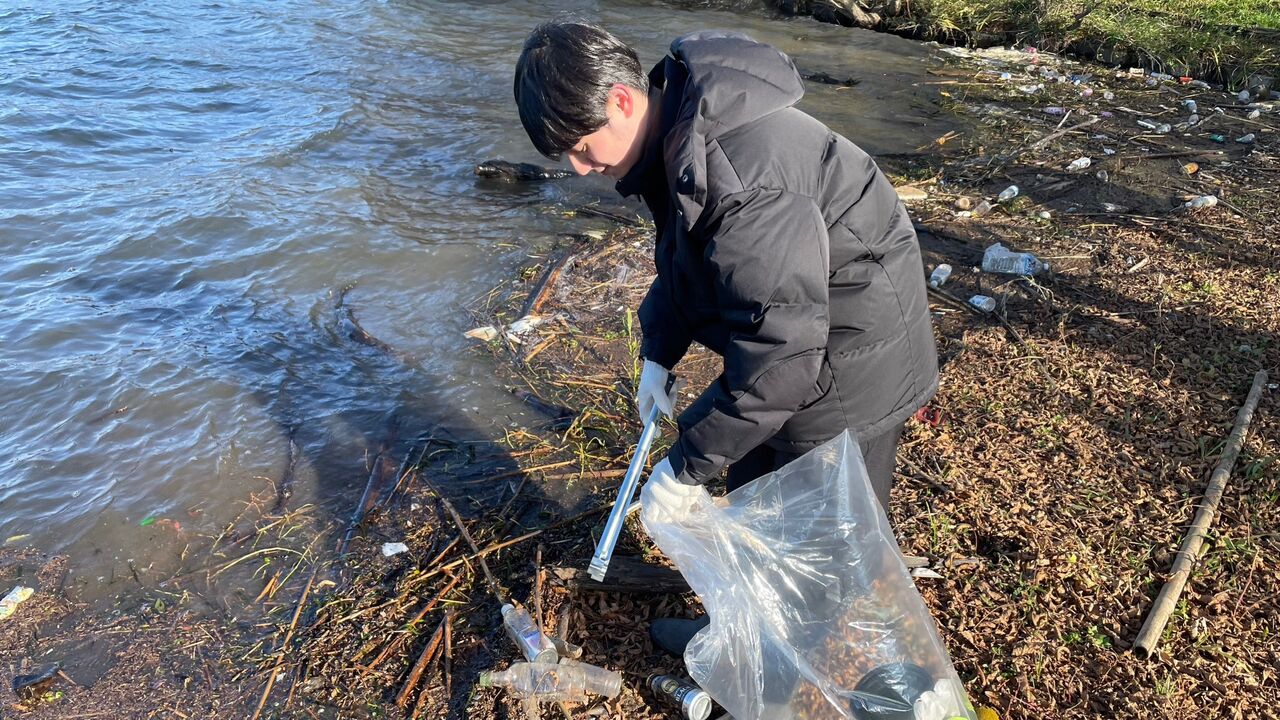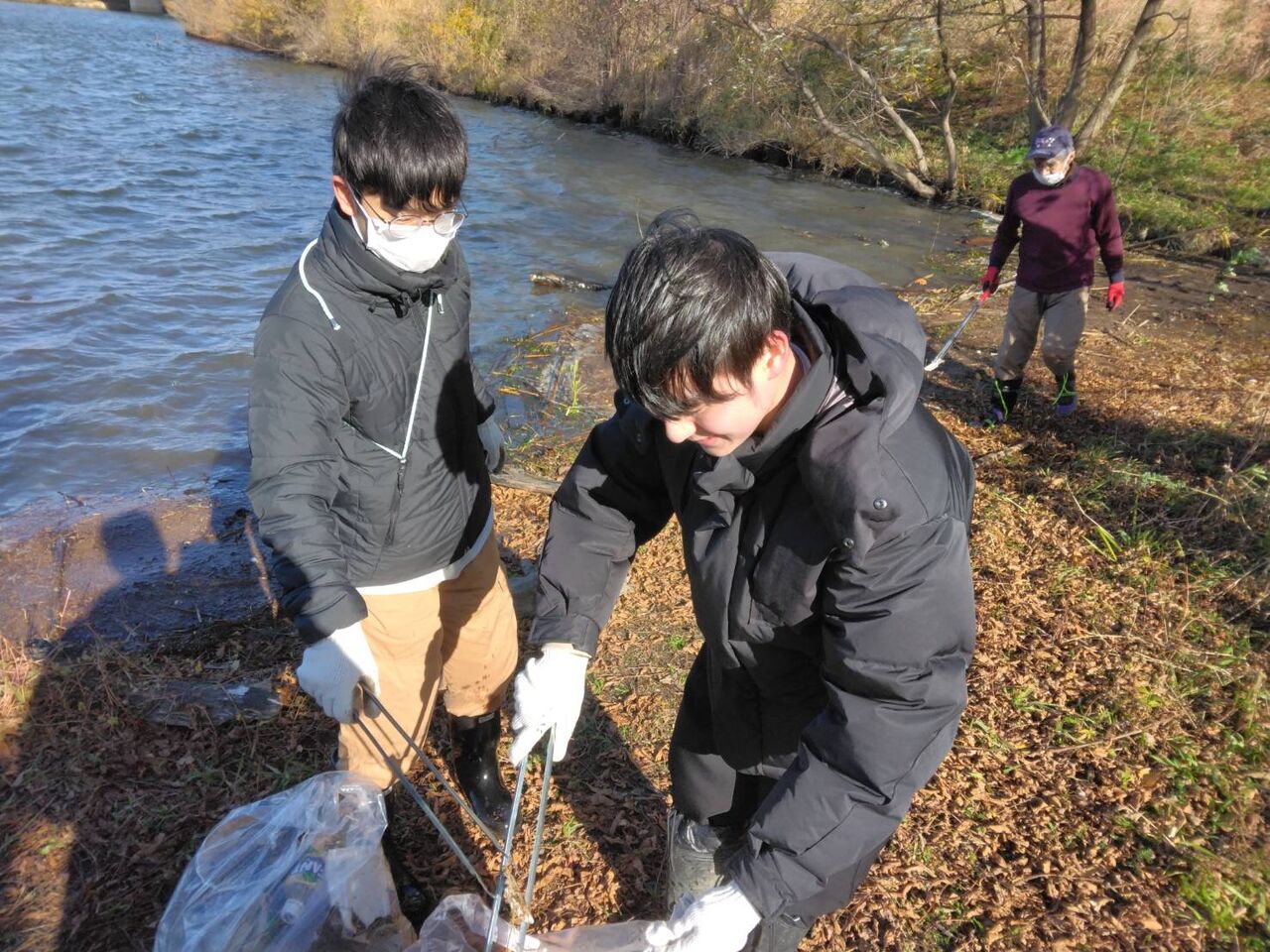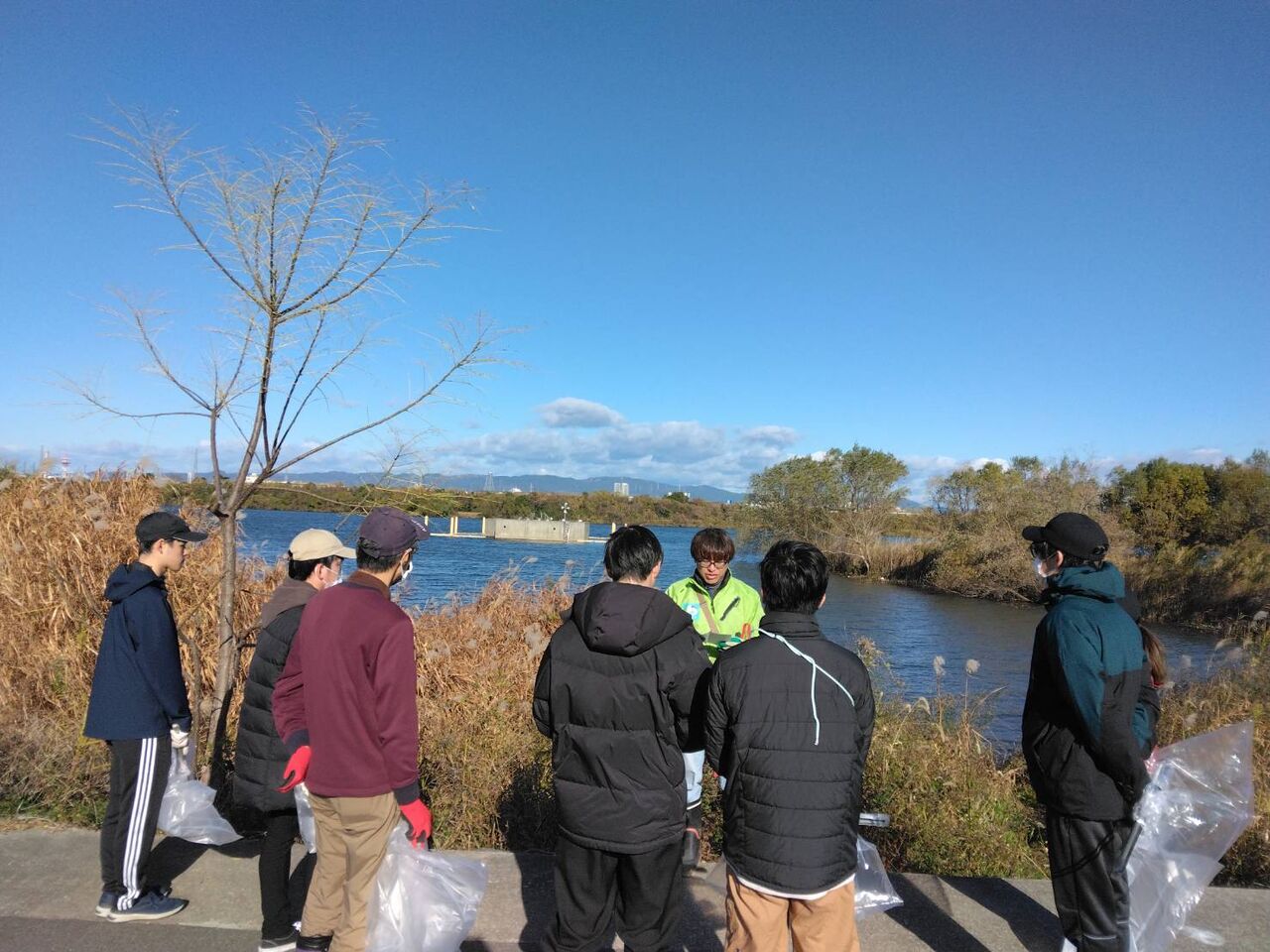 ワンド周辺の清掃活動終了後、昼食と