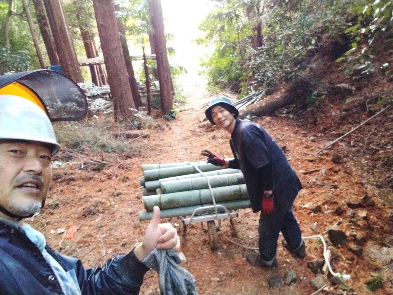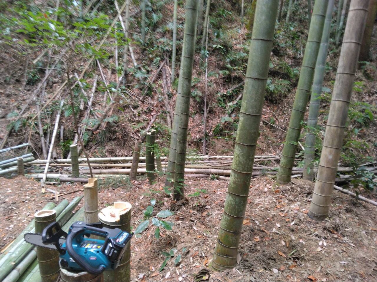 玉切りした竹を物置小屋まで運び、