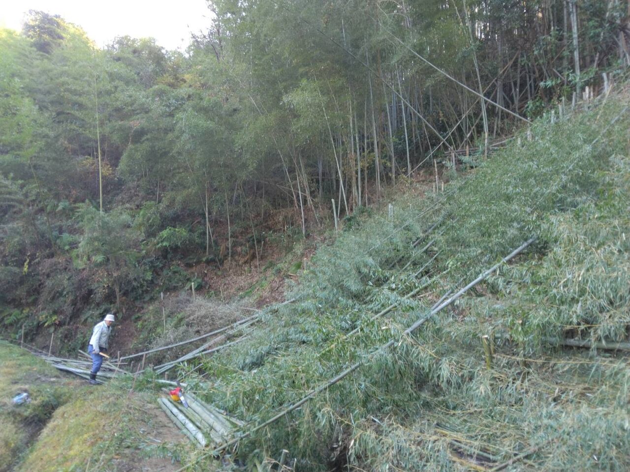 今日も宮之浦で竹の伐採処理、笹の刈取などを行いました。