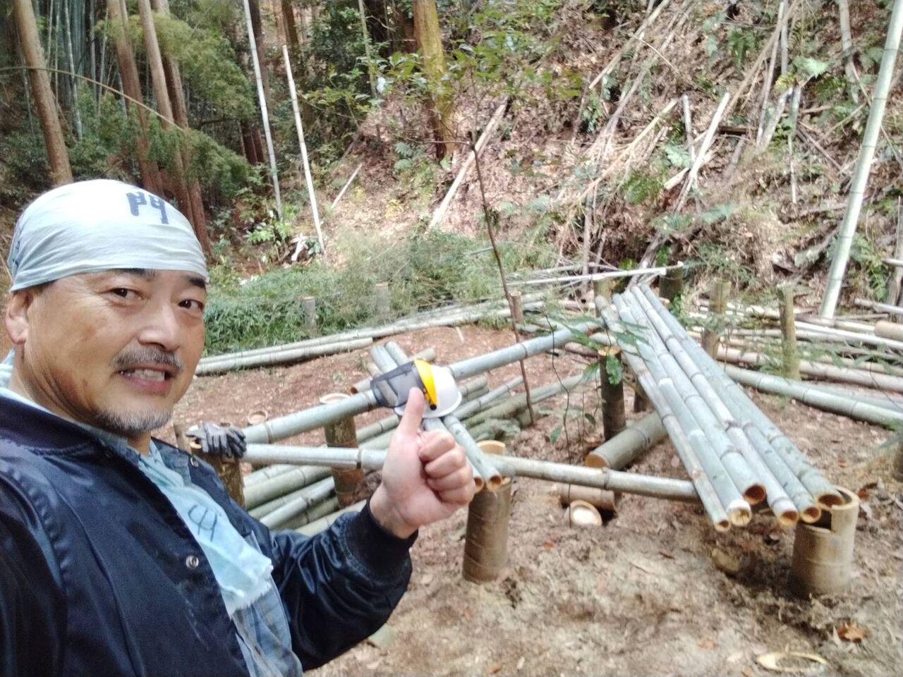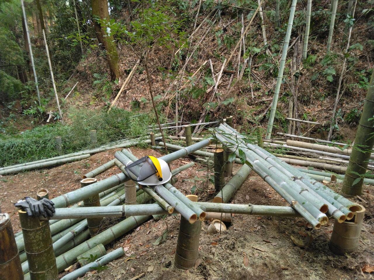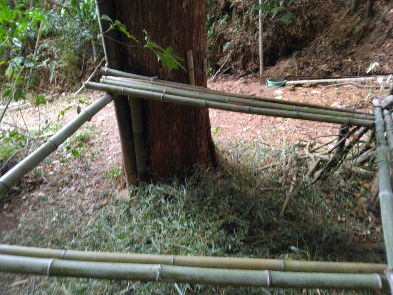 細い竹は鶏小屋の支柱にします。