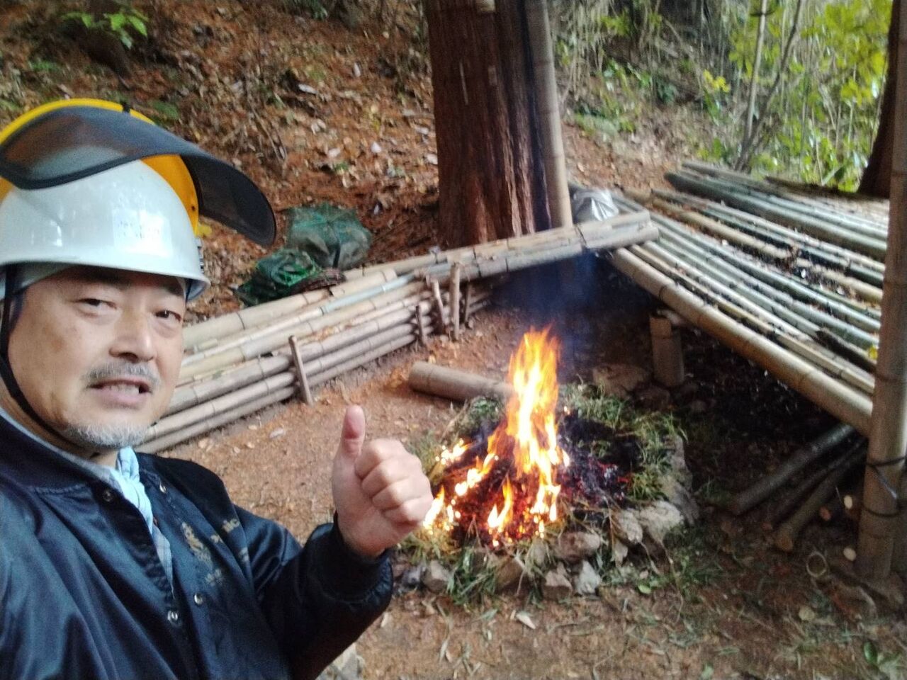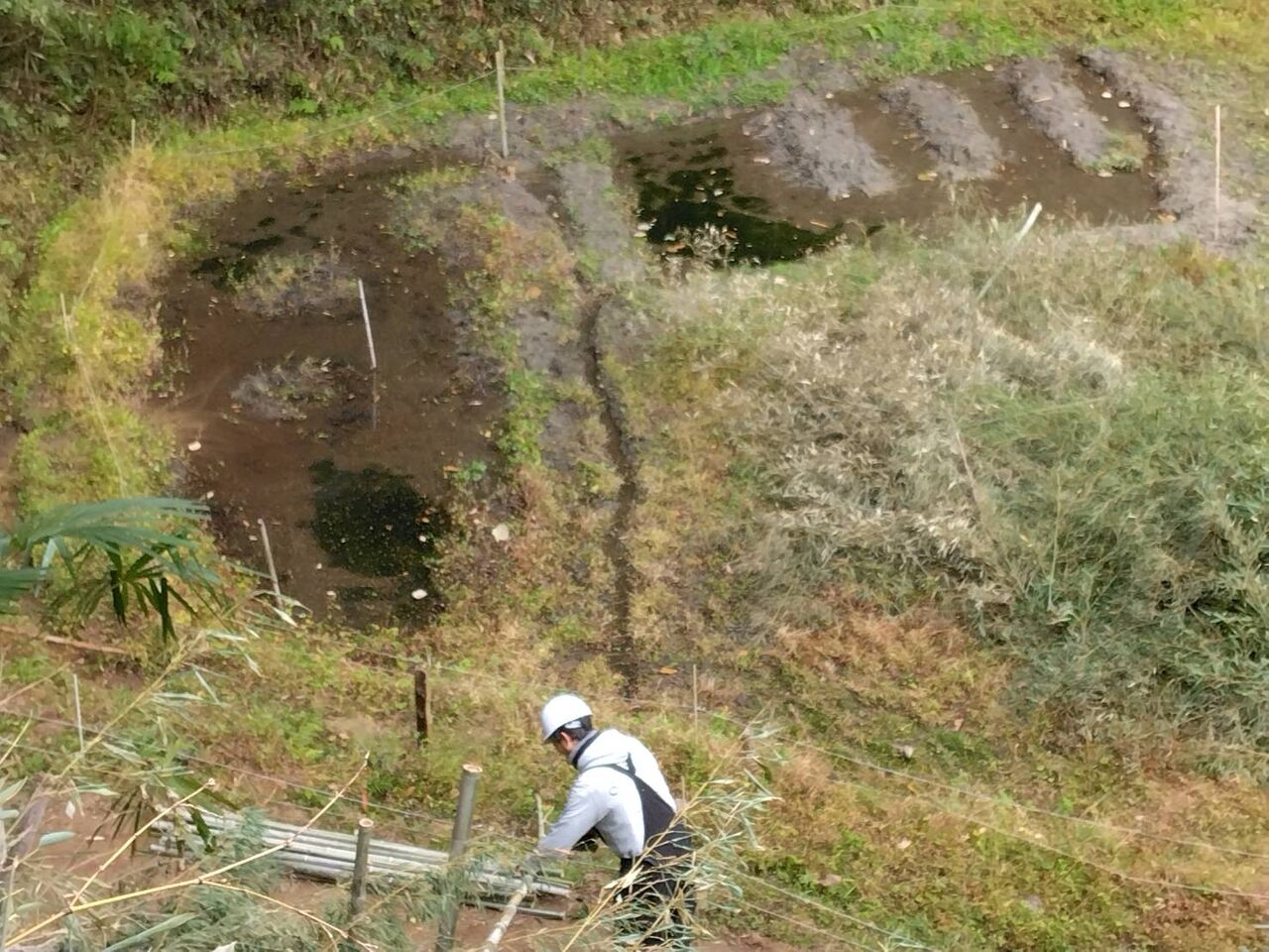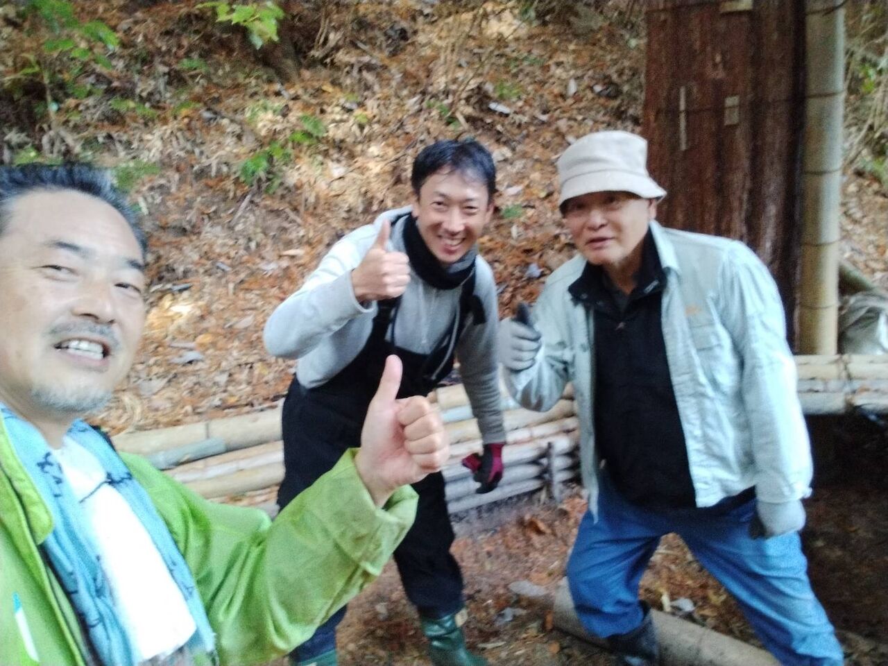 細い竹は鶏小屋の支柱にします。