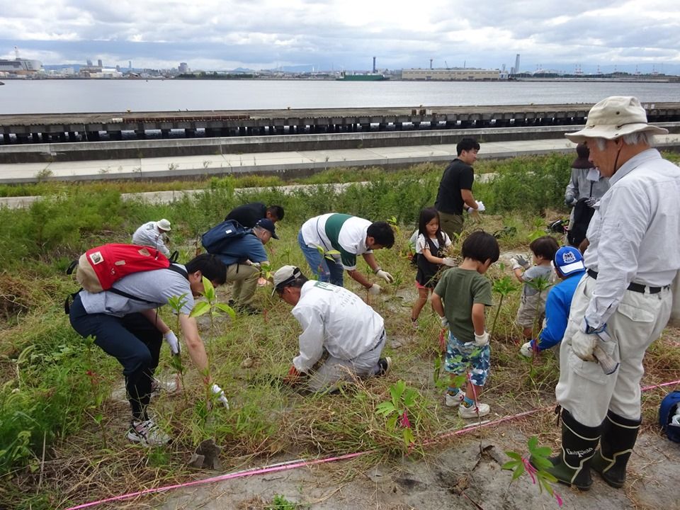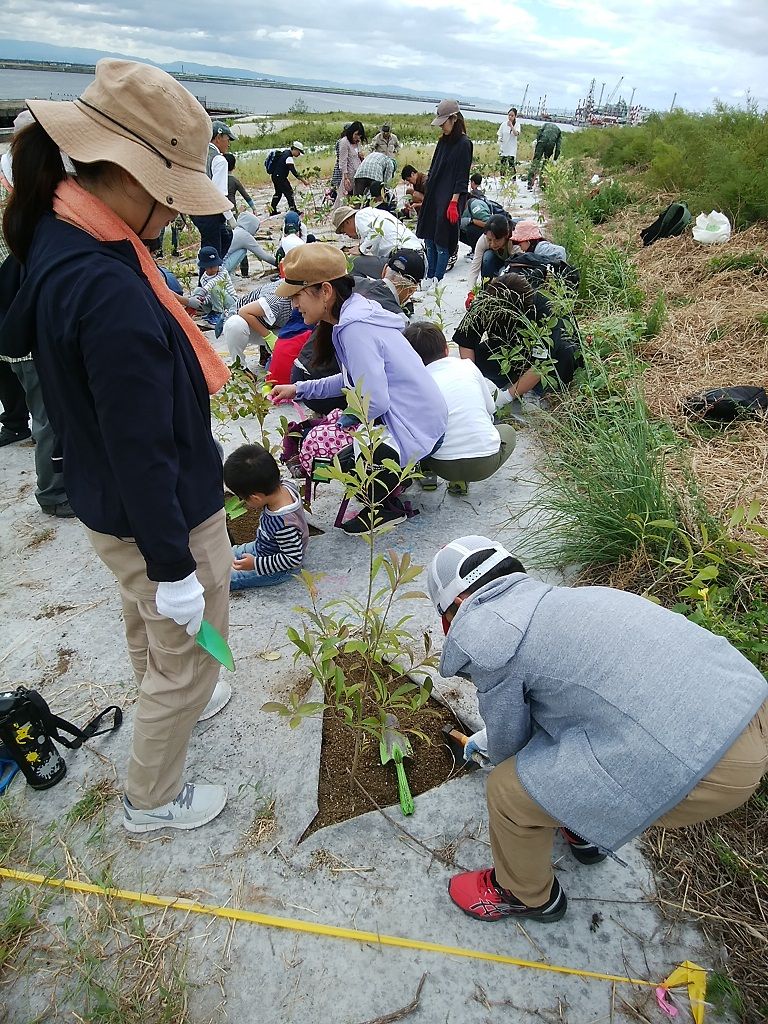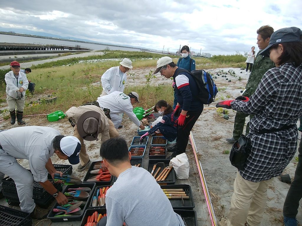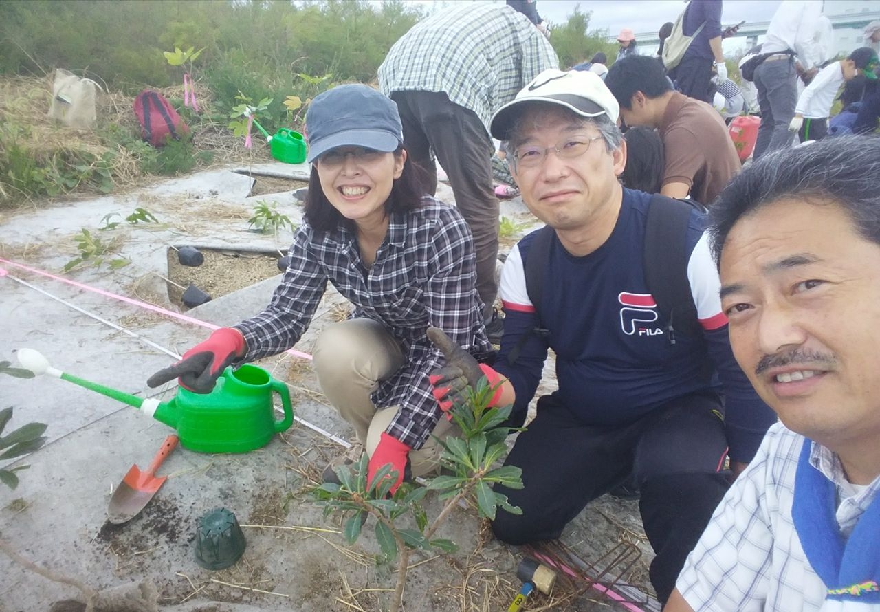 たくさんの参加者で植樹と除草作業です。