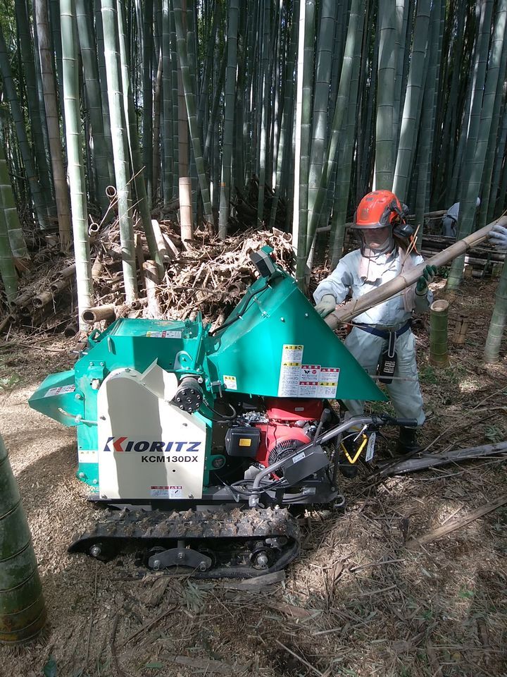 今回、10月7日、13日、14日の3日間粉砕機を使用してのチップ化作業を実施。延べ22名の参加伐採竹の処分を兼ね、チップ化して竹林に撒くことで、下草の抑制と肥料とすることを目的に毎年実施。(協力:八幡市里山再生協議会)