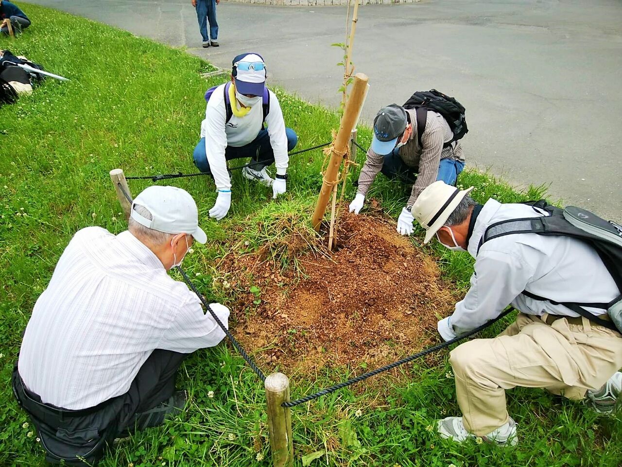 今回の緑地保全のお手伝いは、最近植樹した木の根元の除草です。