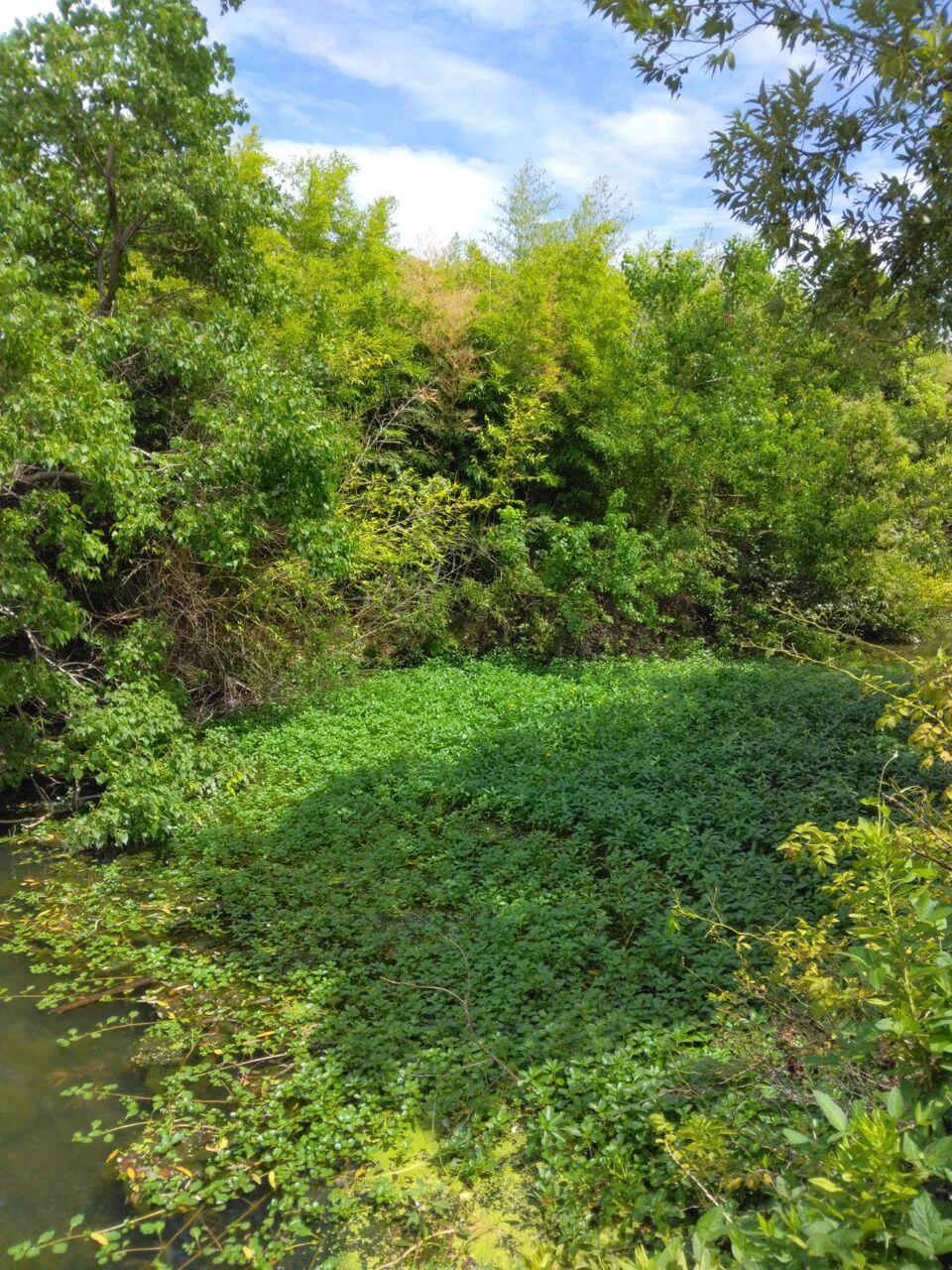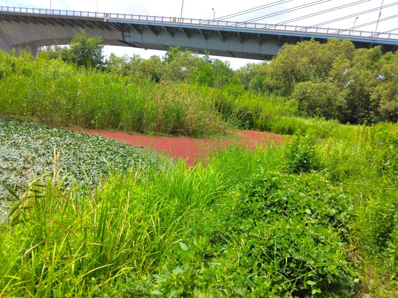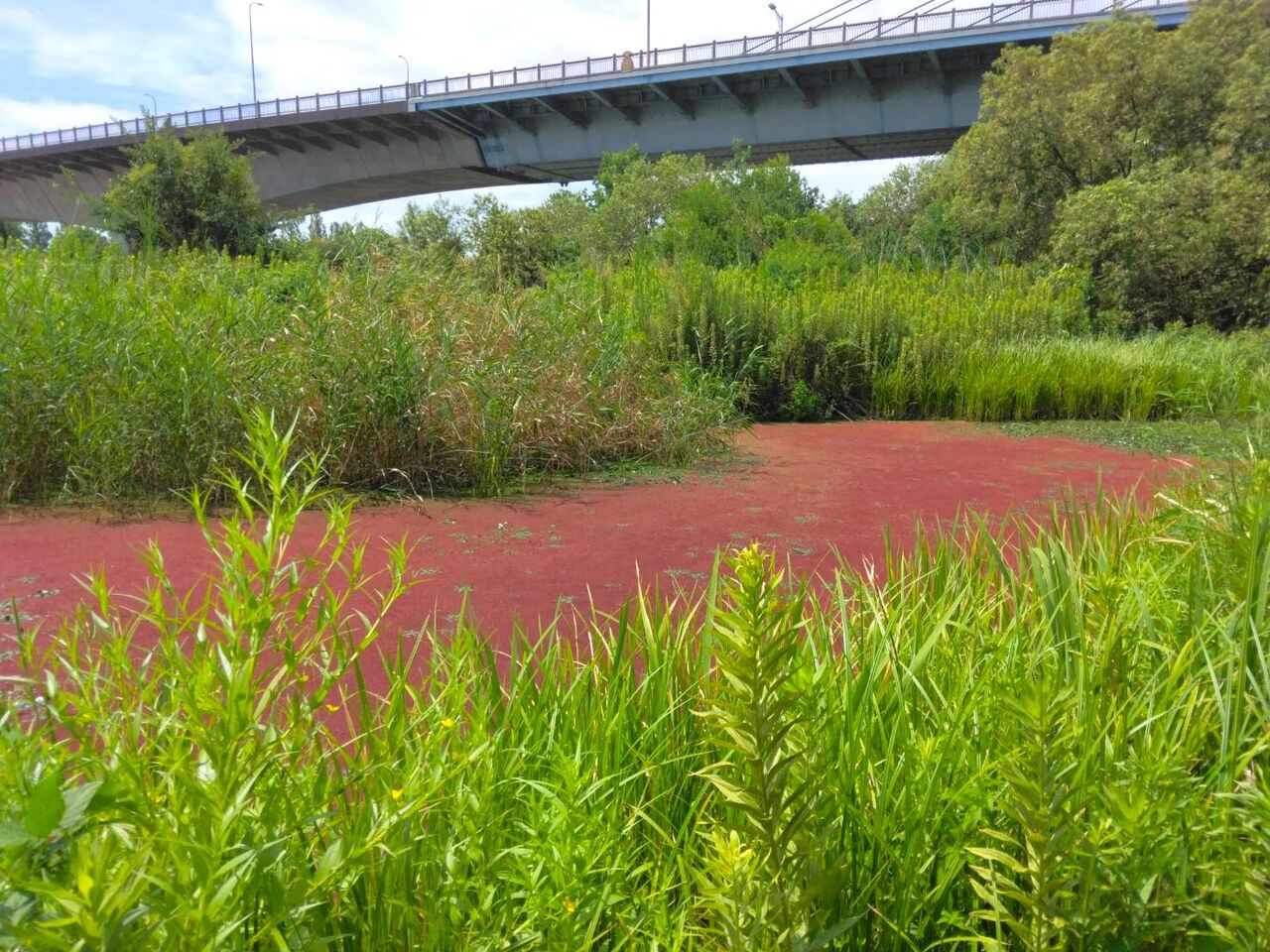 34号北ワンドがアゾラとヒシでいっぱい。