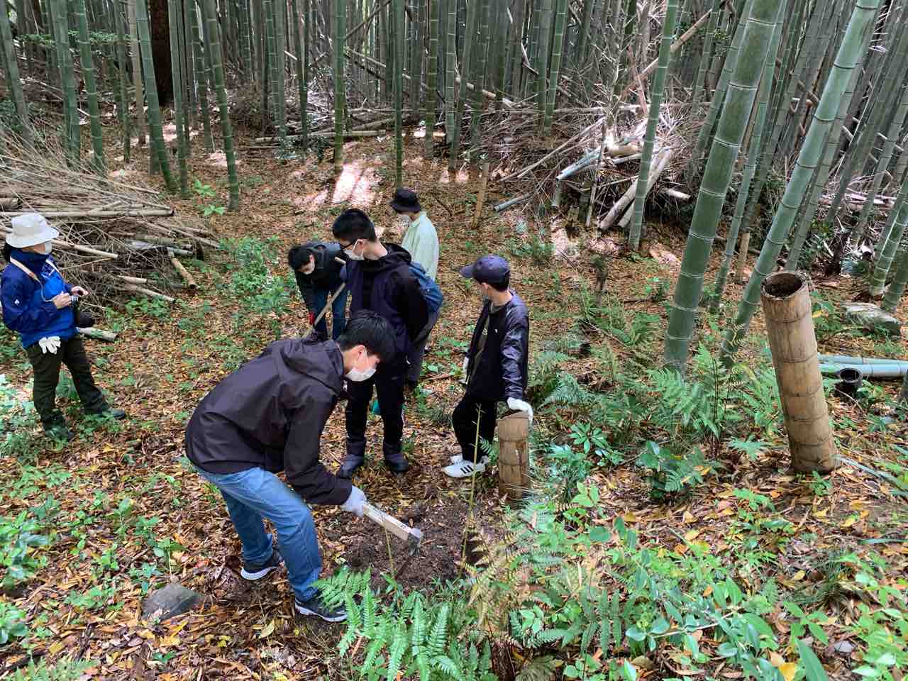 大学生たちは別エリアでも筍掘りに挑戦です。