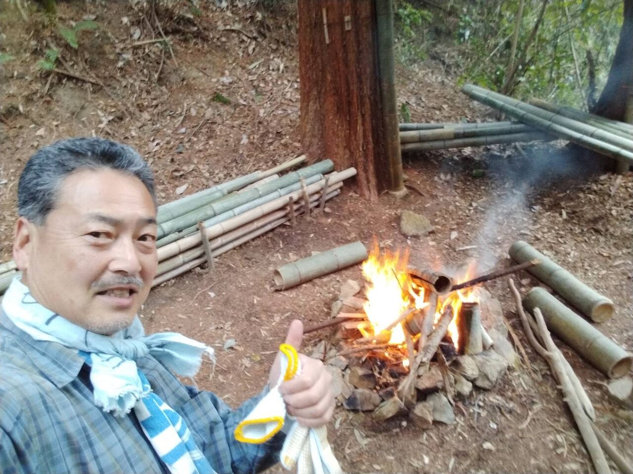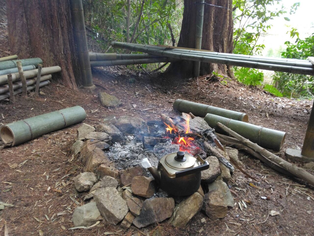 火起こしをして、お湯を沸かして待機。