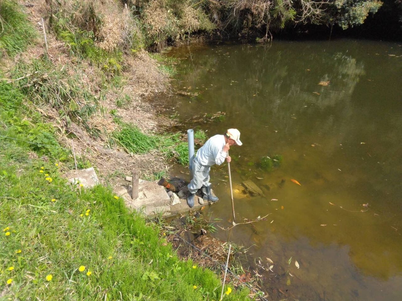 こちらの溜池では、少し水漏れがするようで、色々確認中です。