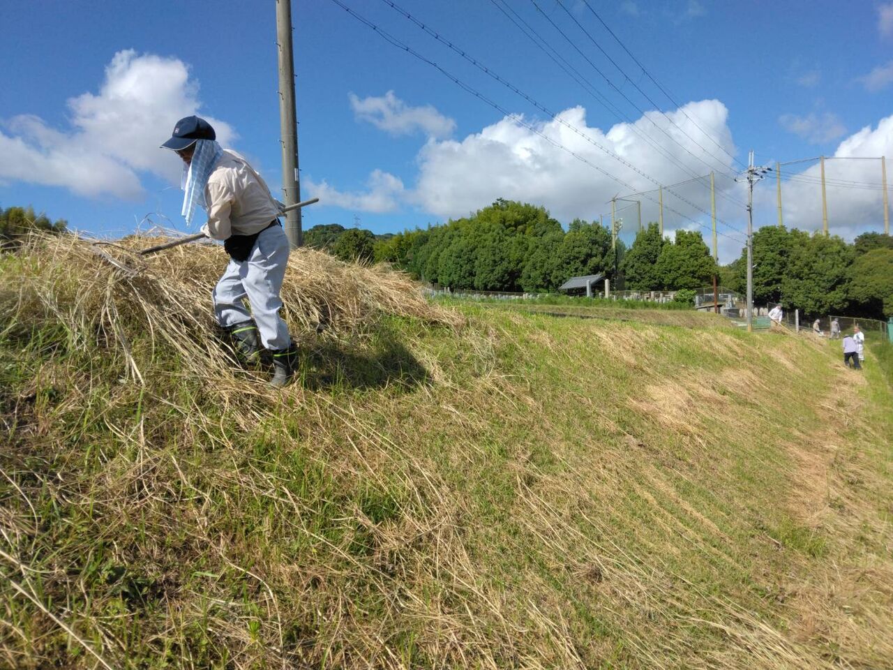 稲刈りと土手修復作業