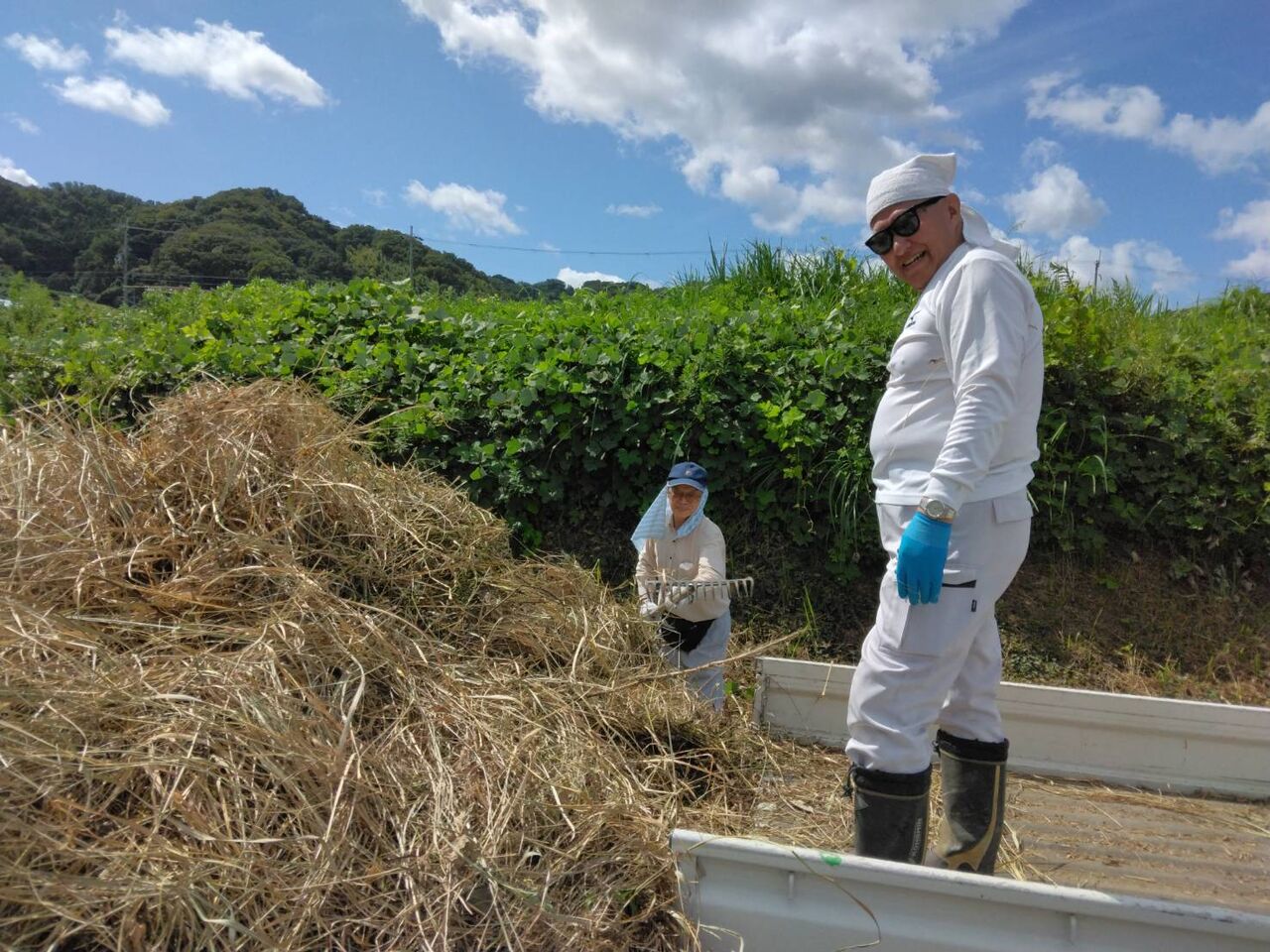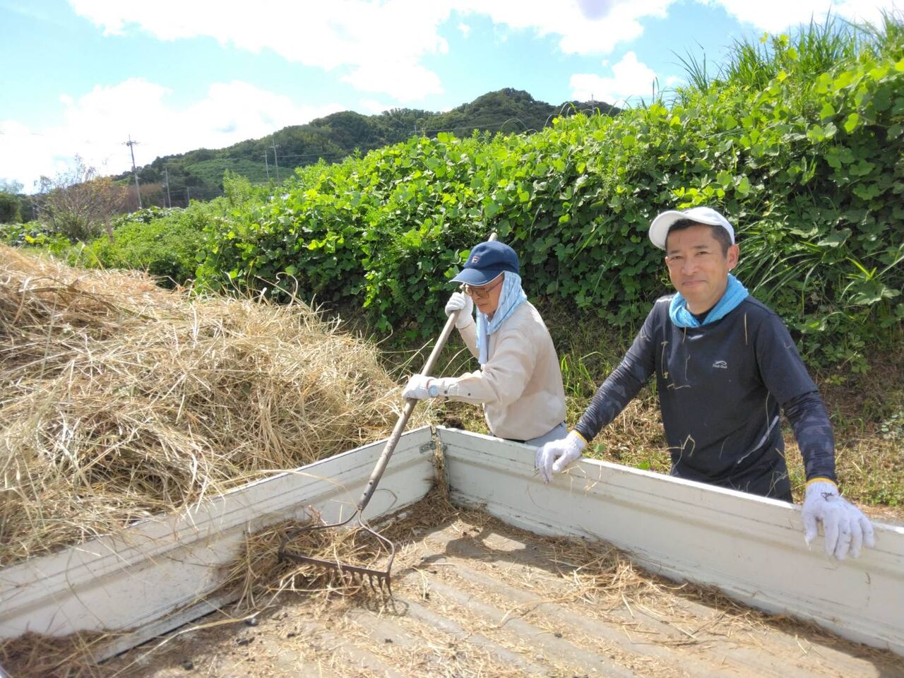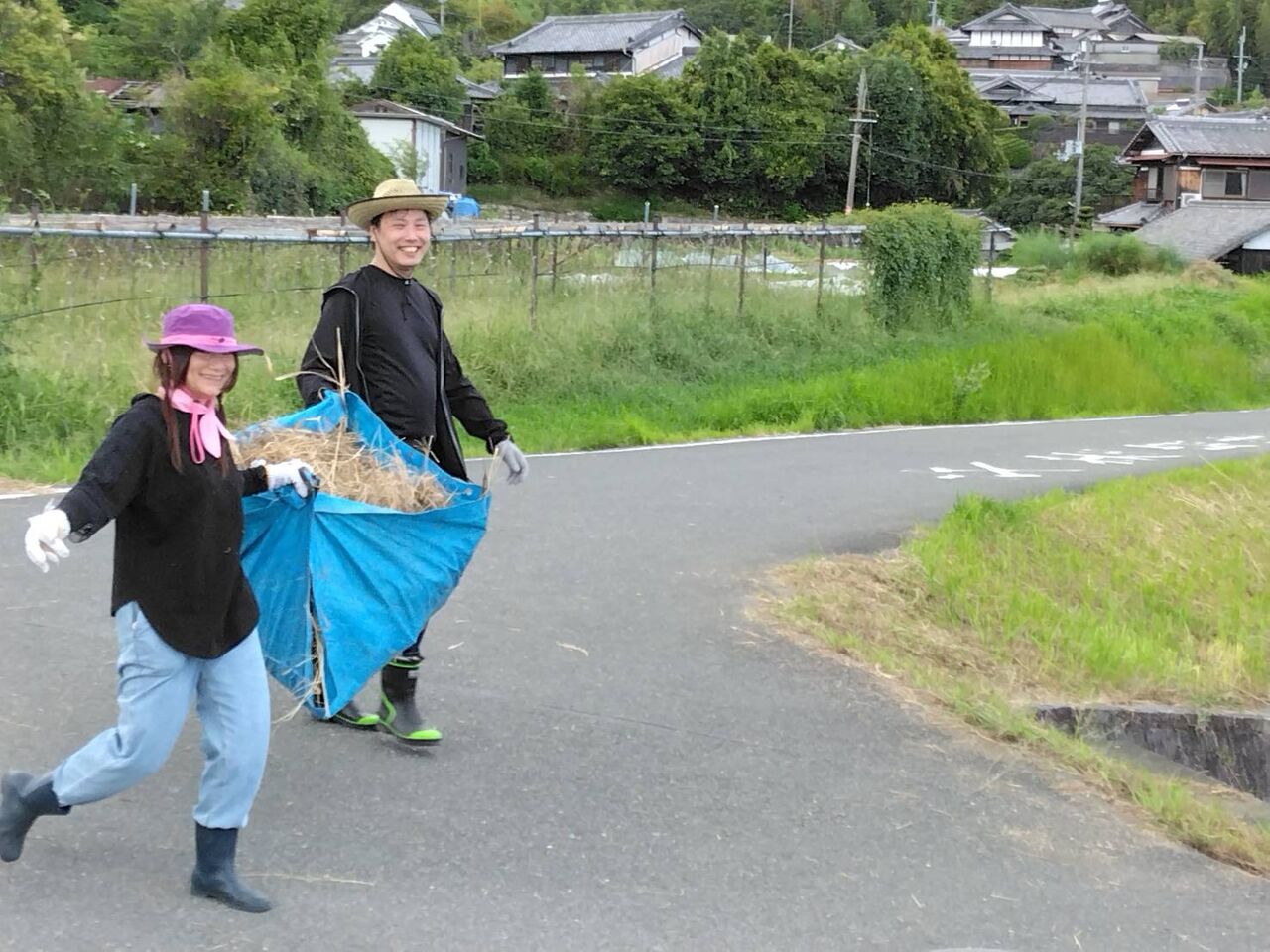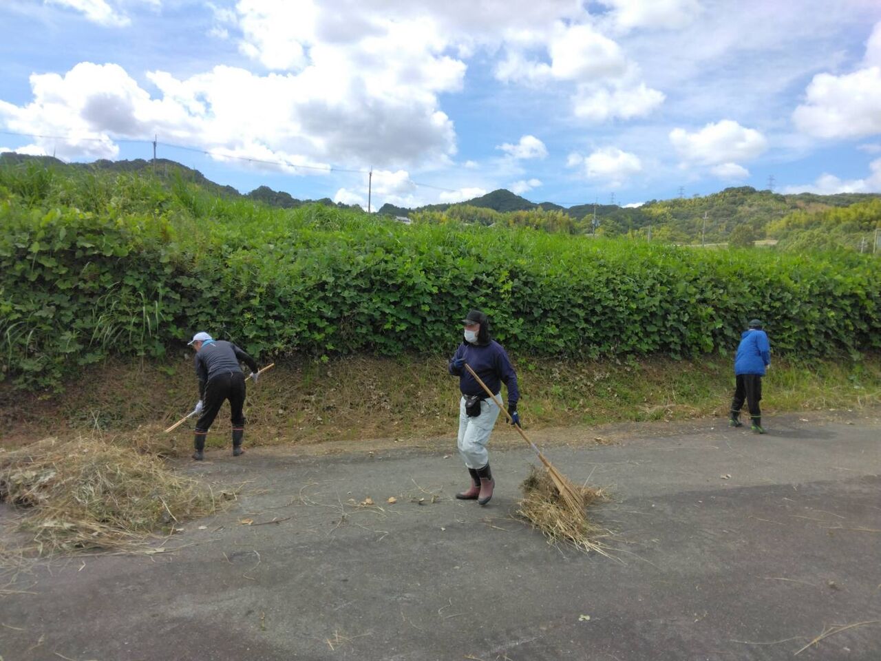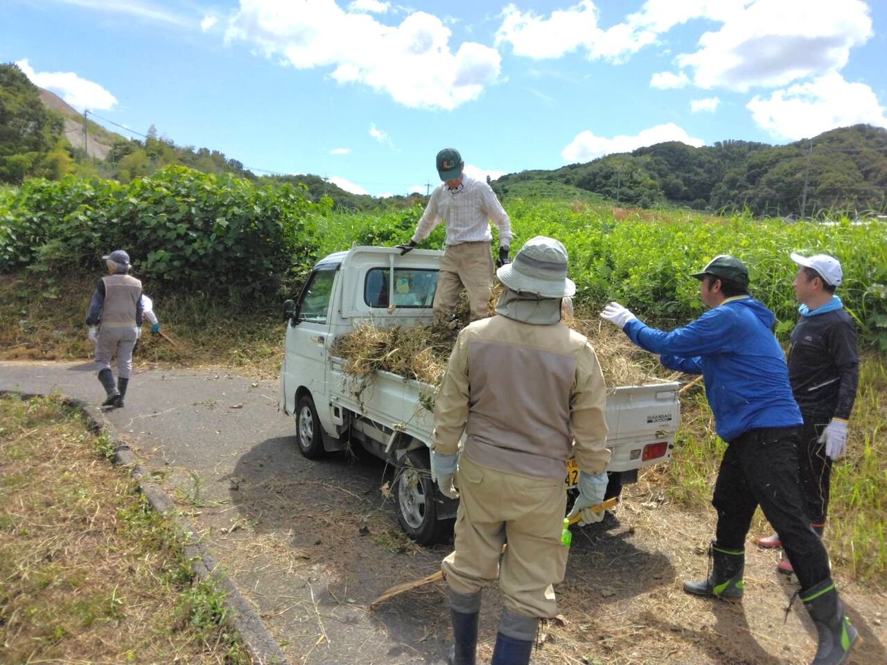 今回の作業は、穂谷区で草刈りをしたあとの草回収です。