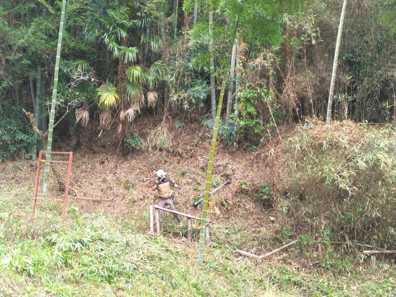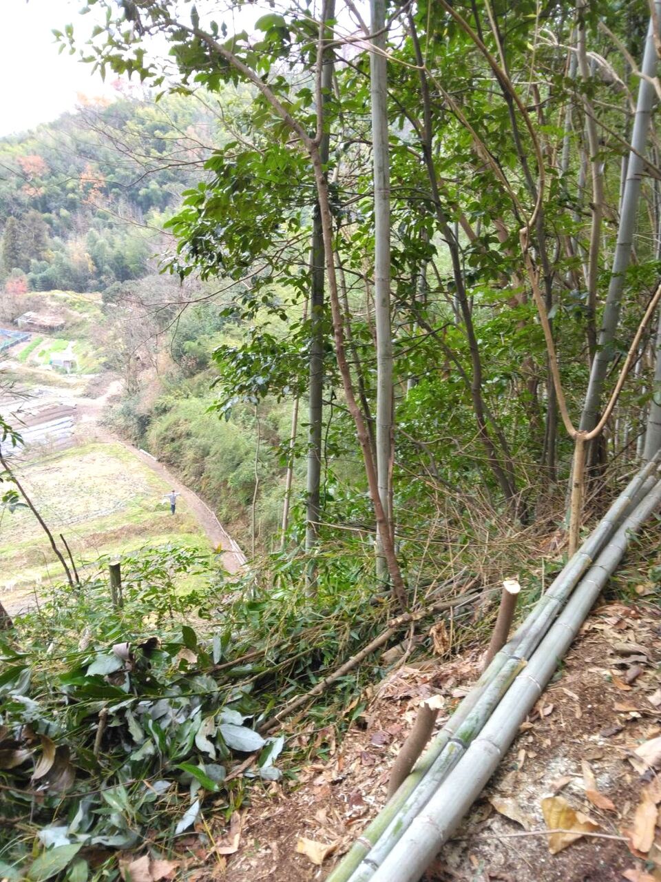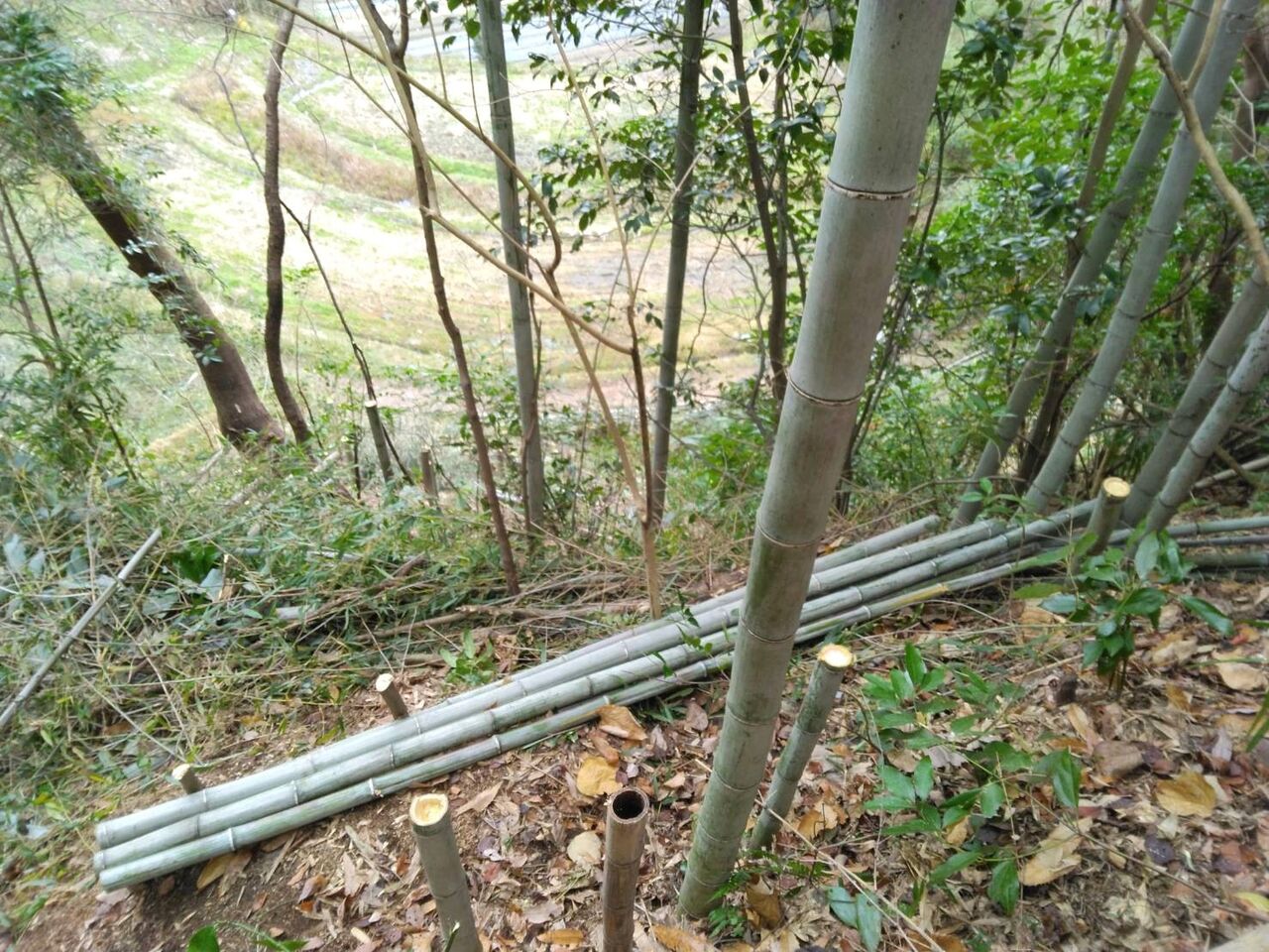今日も宮之浦で竹の伐採処理、笹の刈取などを行いました。