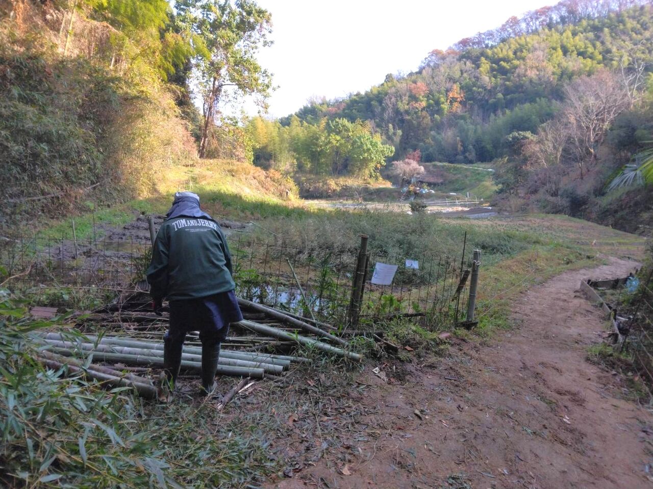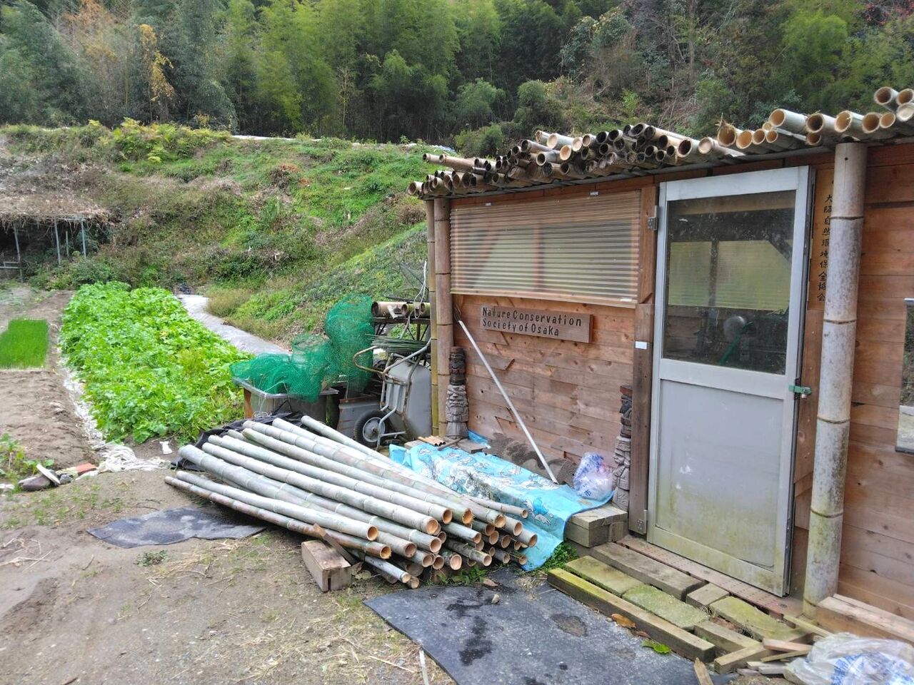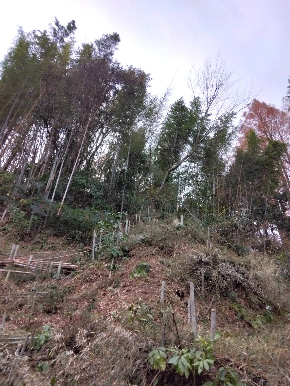 細い竹は鶏小屋の支柱にします。