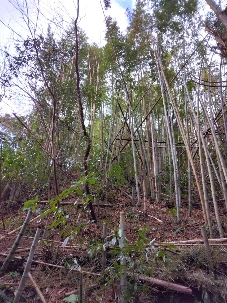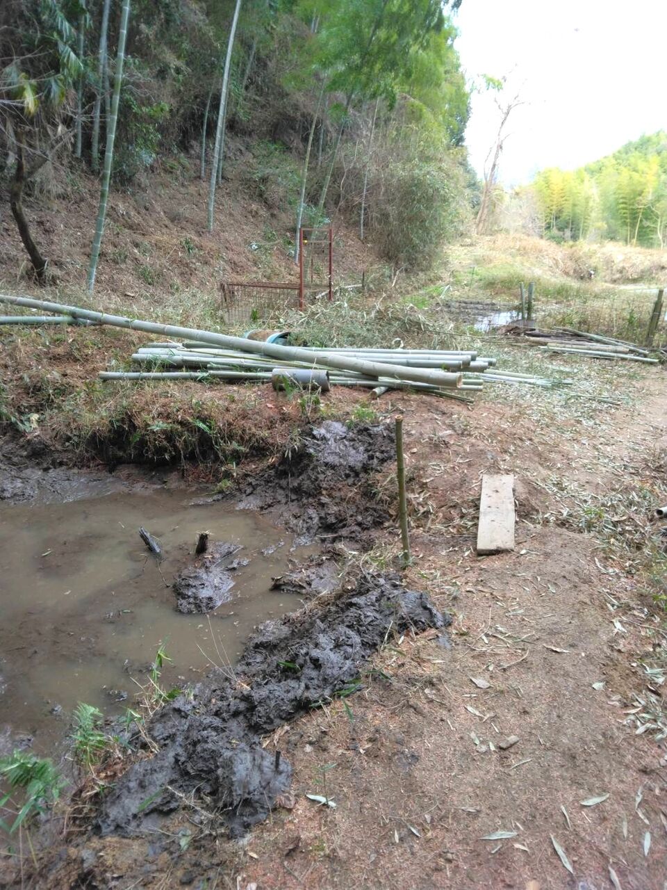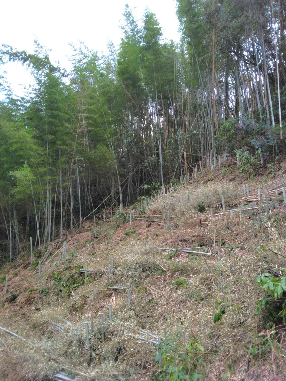 今回は先日伐採した竹の処理と土手の笹刈り、