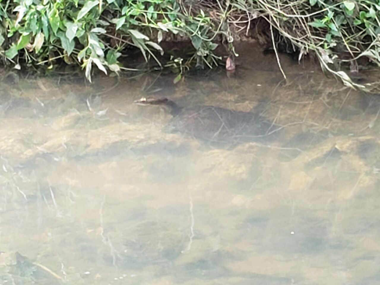 最近少し下流でエイが泳いでいるのを見た。