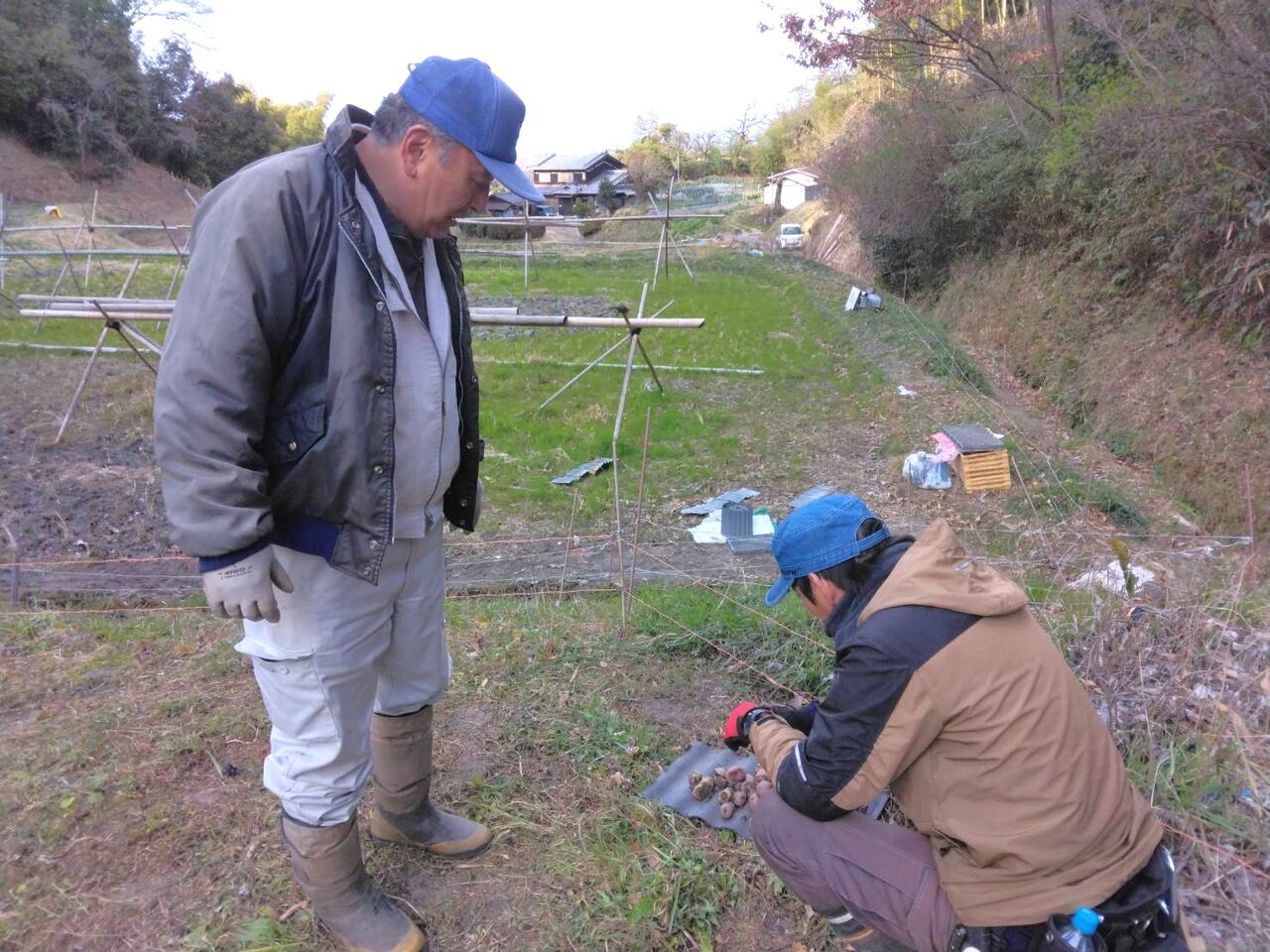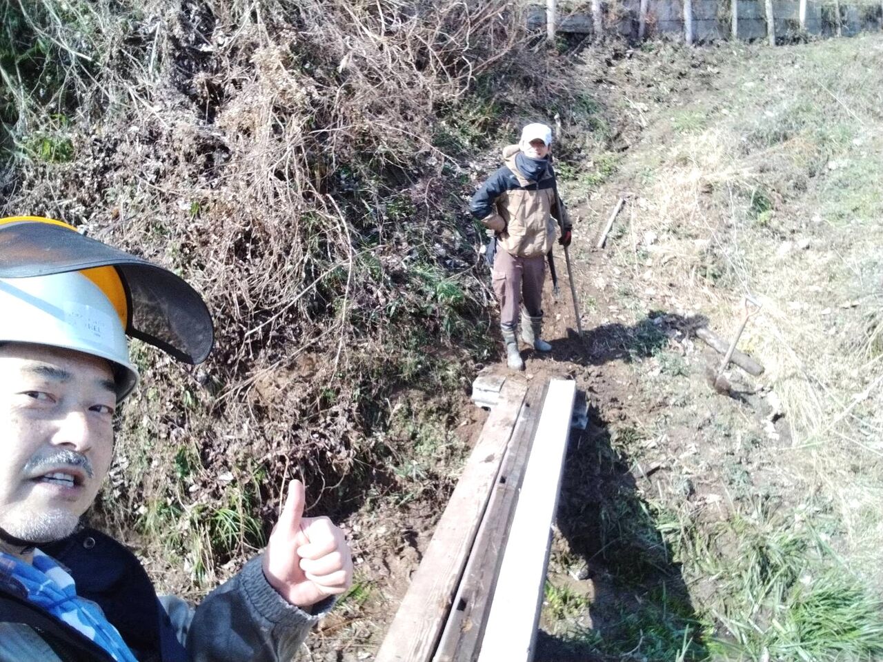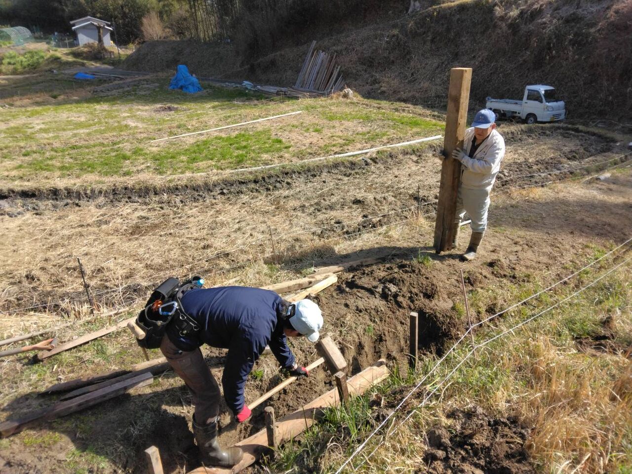 今日は、午前中、2時間程の作業でキウイの棚を作りました。