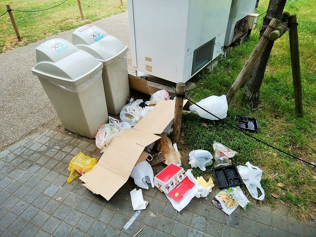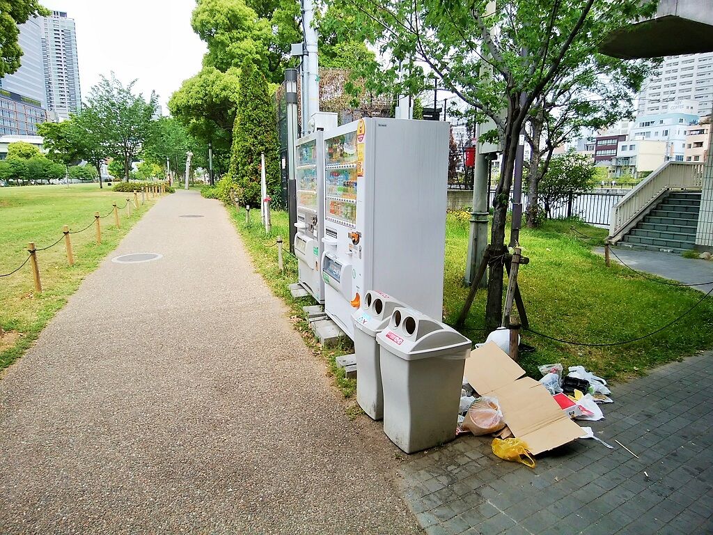 バラはとてもきれいなのですが、公園内のトイレ、自販機の周辺は、