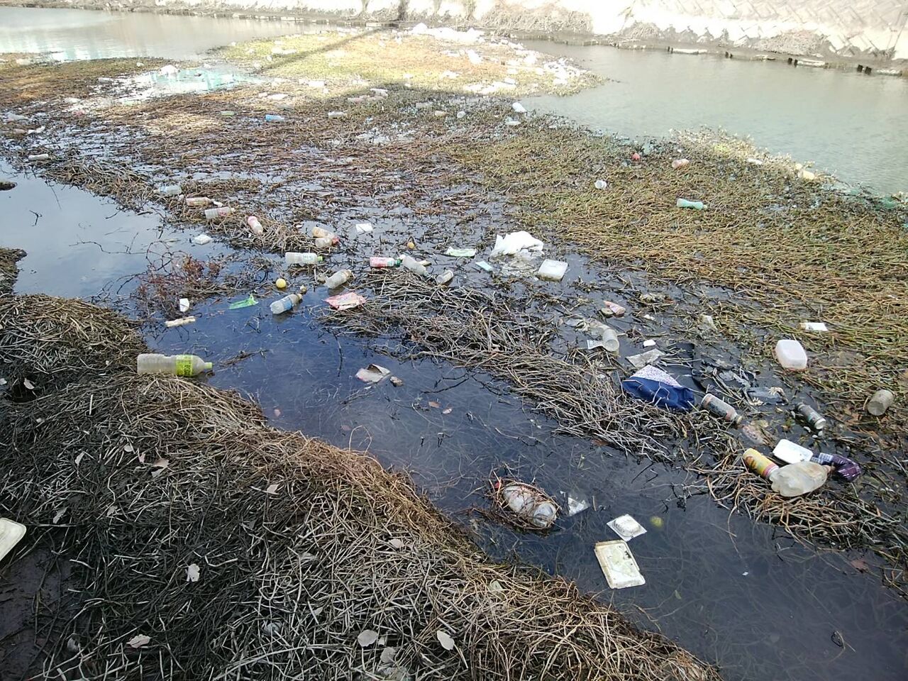 その上にポイ捨てされたペットボトルなどのごみが一杯だった。
