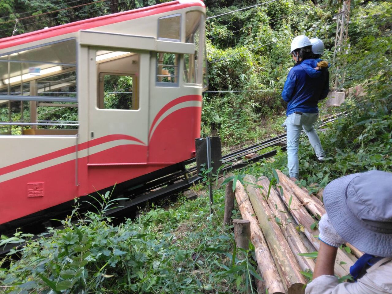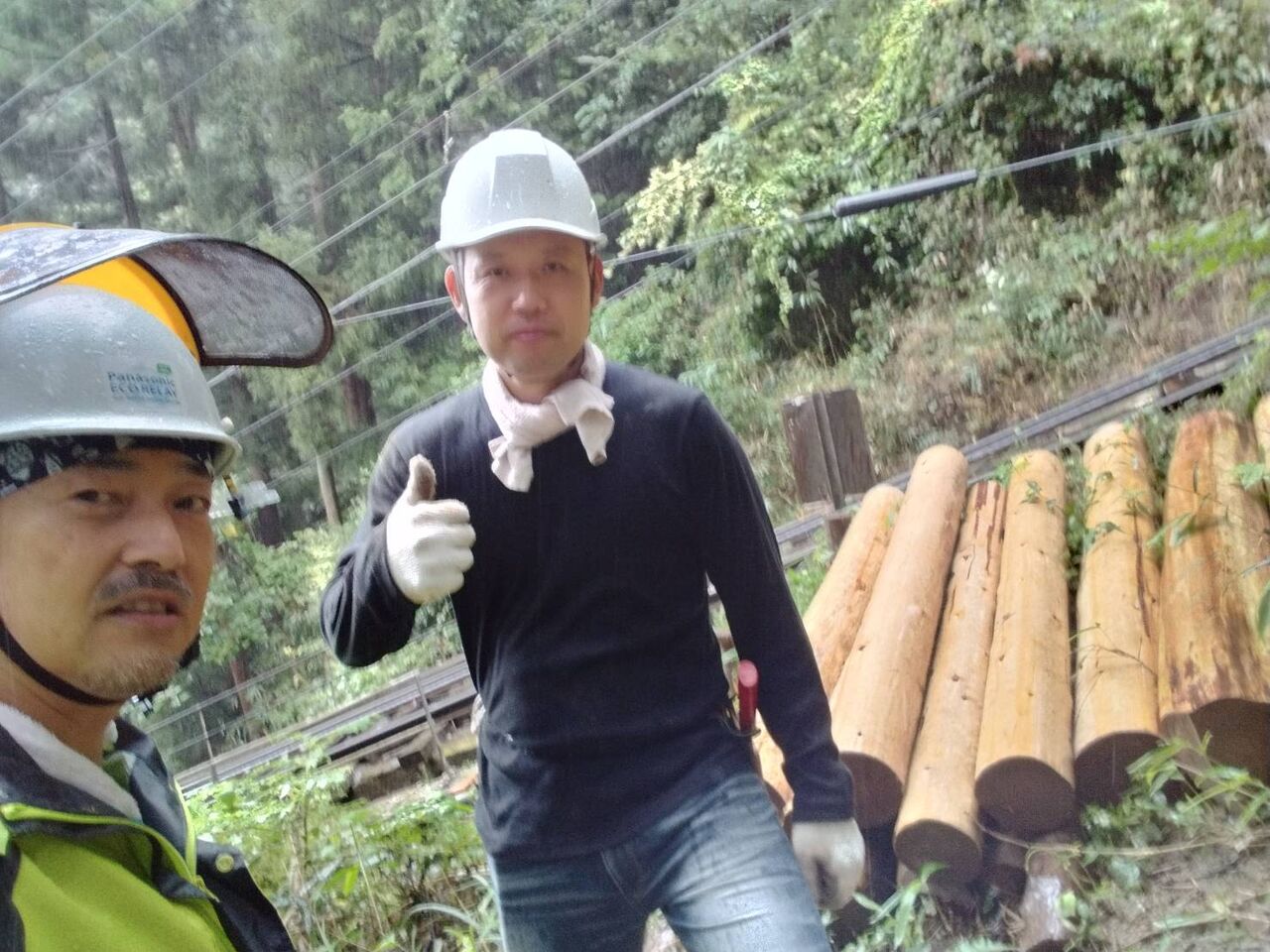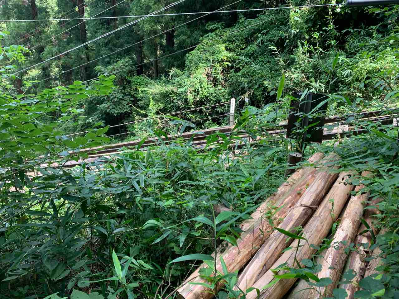 間伐材をケーブルで運び出すための場所