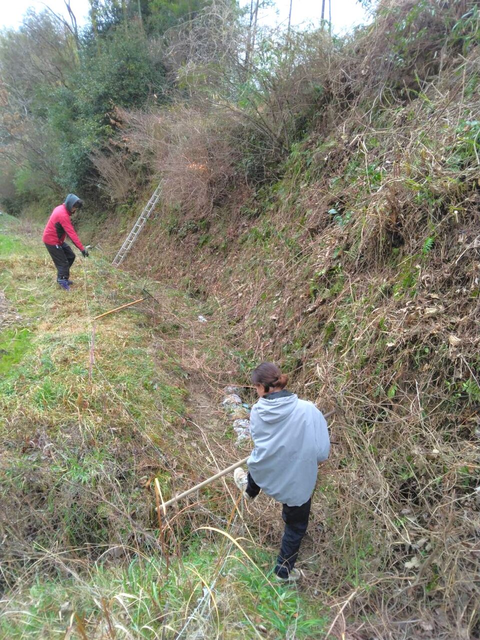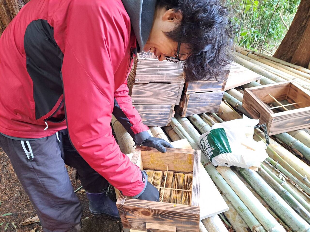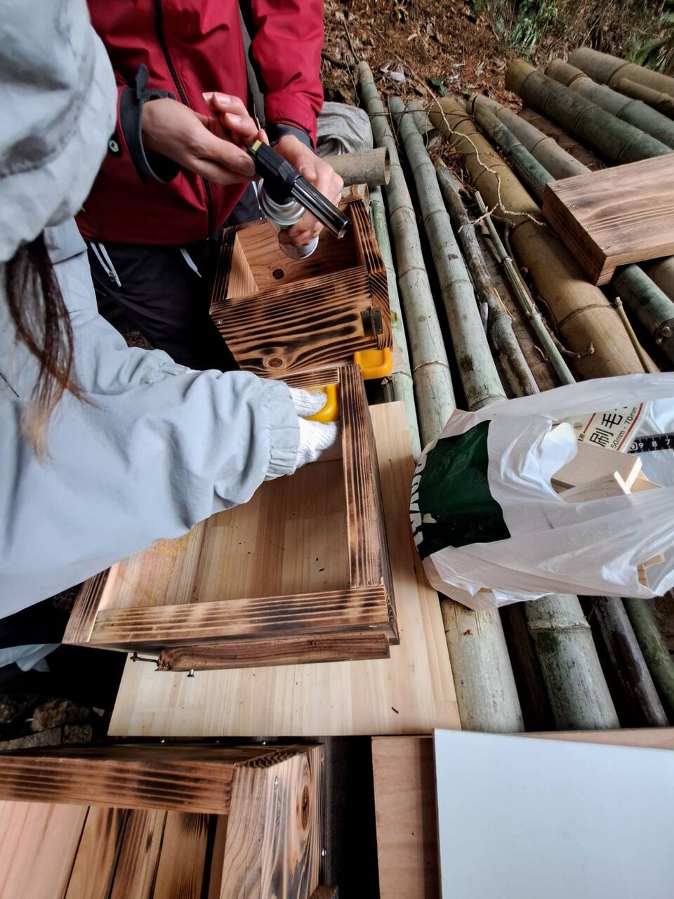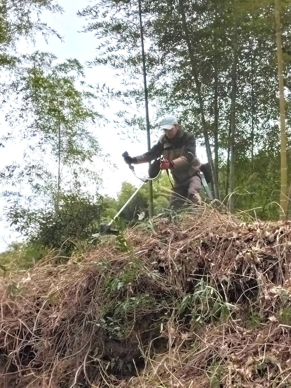 土手の草刈りと草集め、ハチの巣箱づくり等をおこないました。