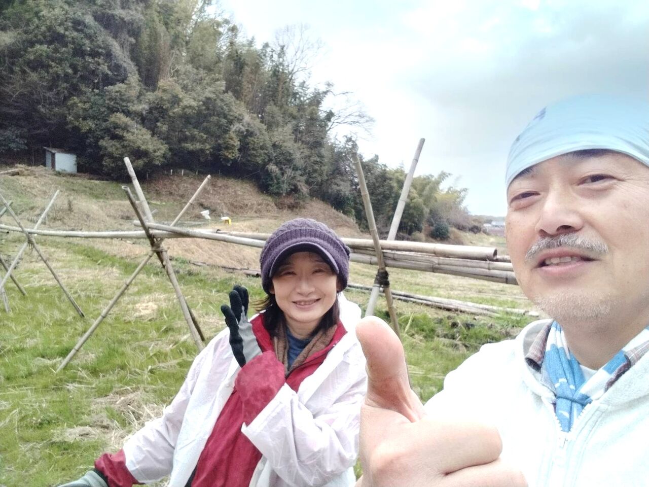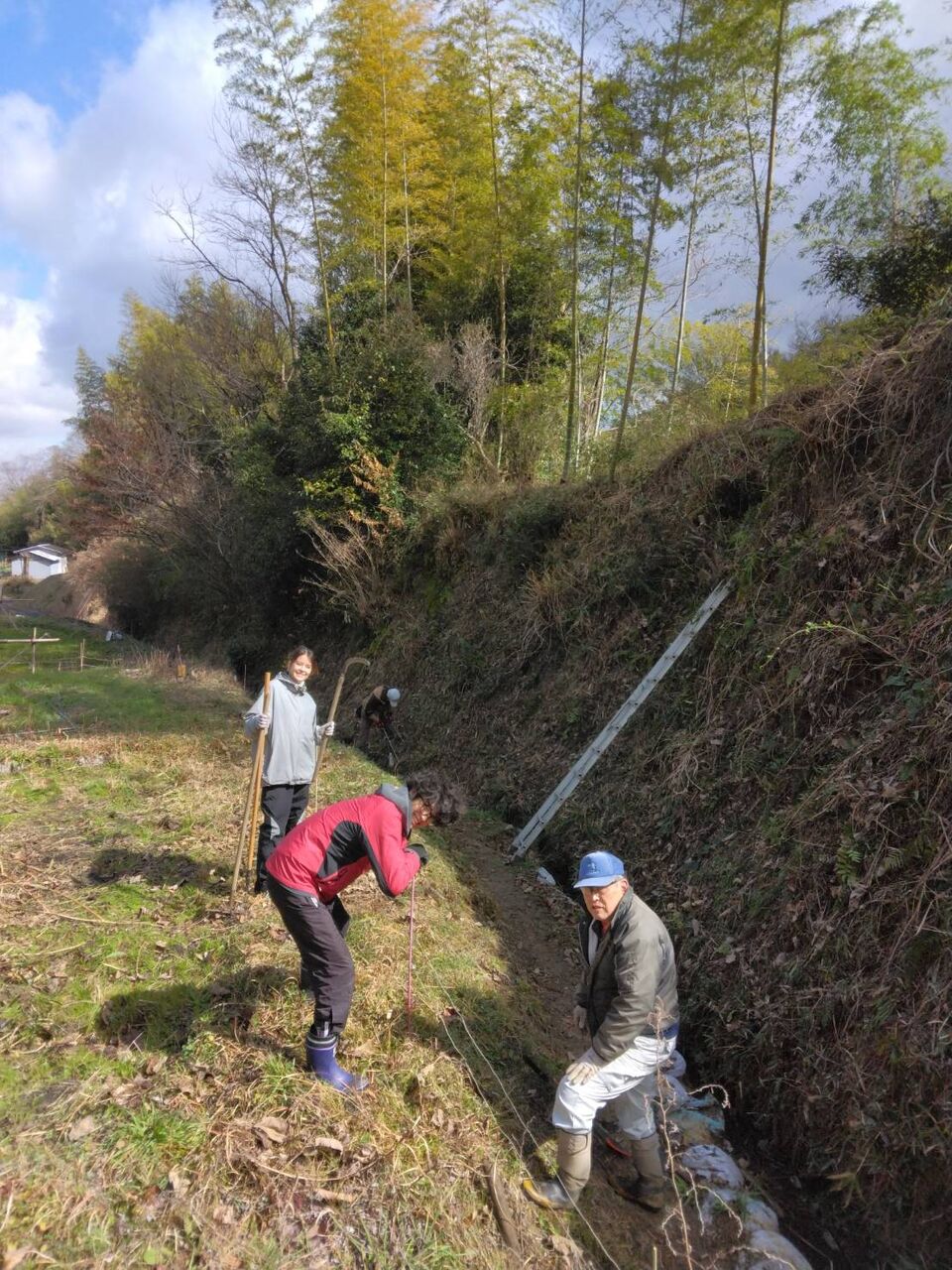 作業は、関西外国語大学(ひまわり)から2名と地権者、